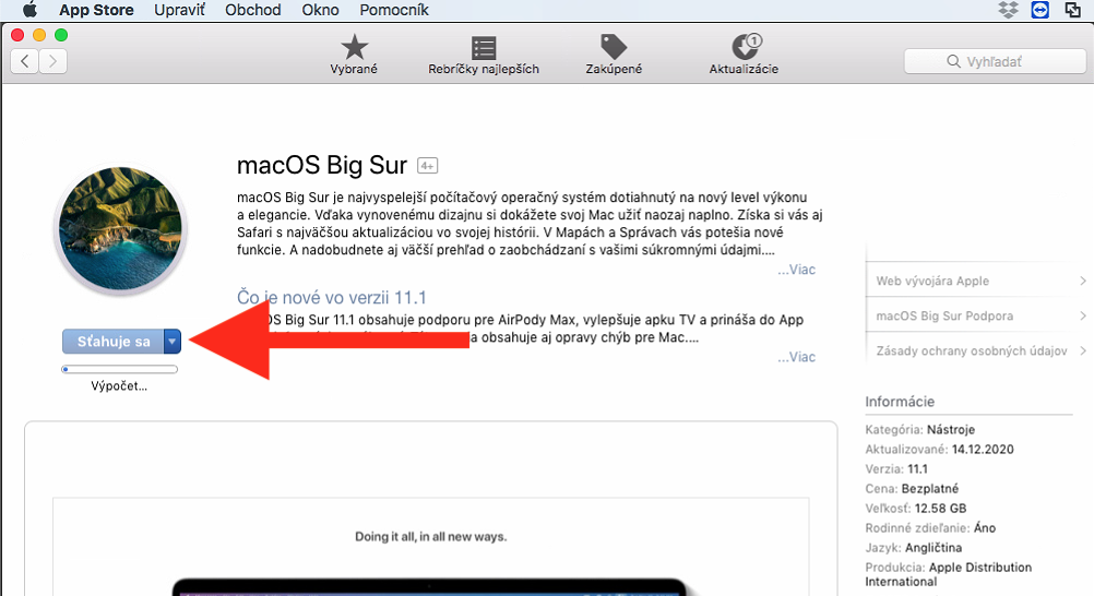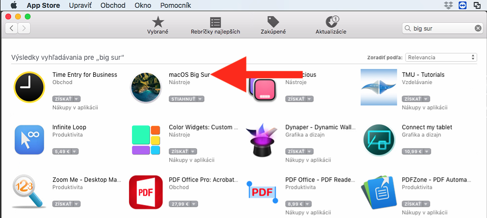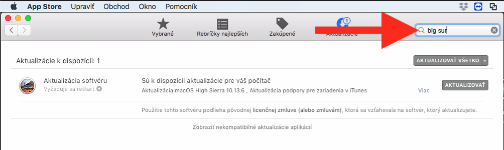 Kliknite do políčka vyhľadávania, napíšte big sur a stlačte enter