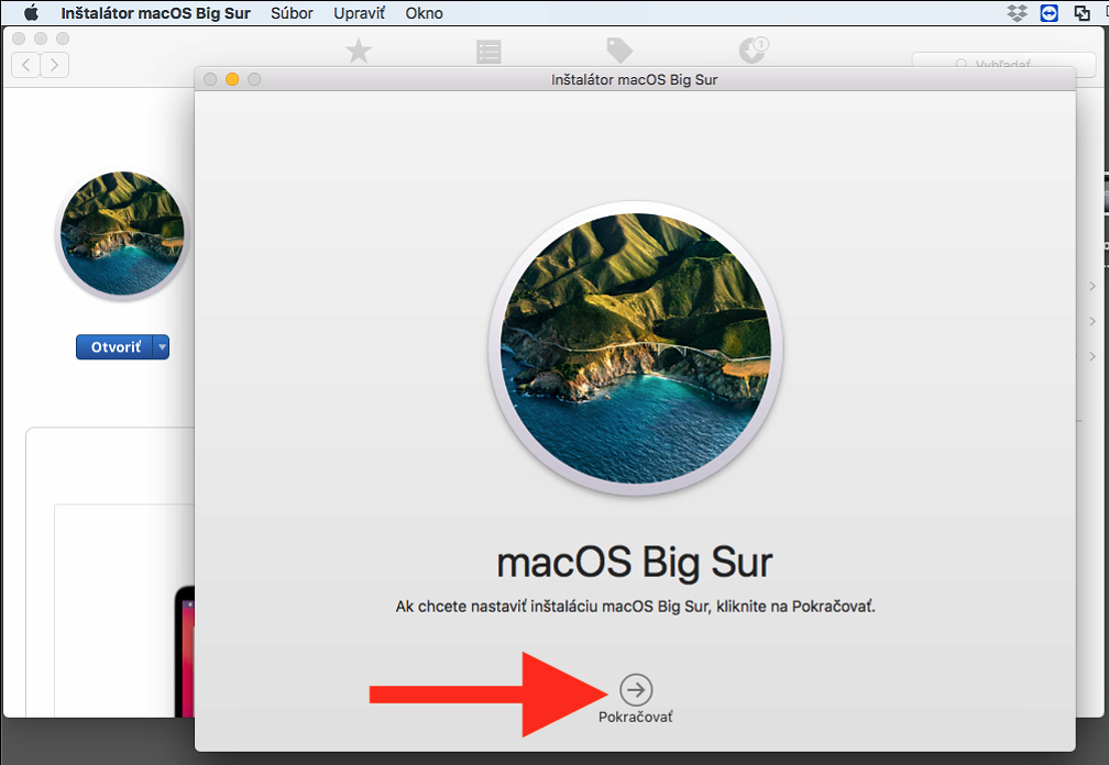 Po stiahnutí sa inštalátor automaticky pustí. Ak by sa nepustil, kliknite na Otvoriť. Potom kliknite na pokračovať.