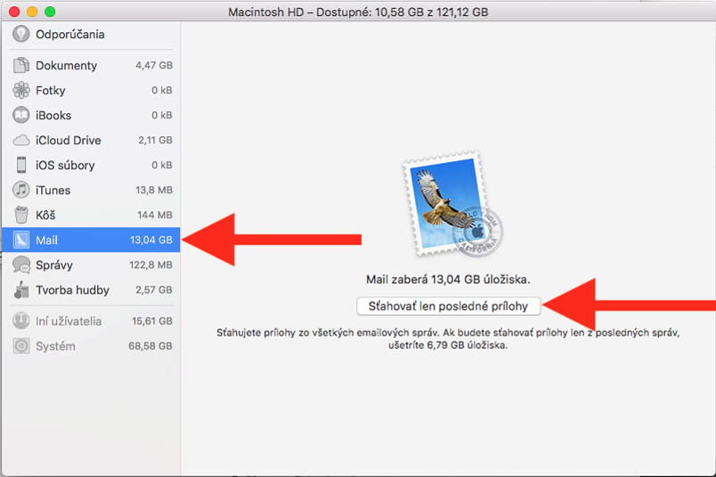 Ak použivate aplikáciu Mail, môžete vymazať prílohy starých správ.