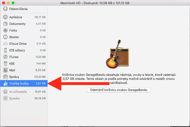 Následne sa môžete preklikať medzi priečinkami a vymazať napríklad Knižnicu hudby.
