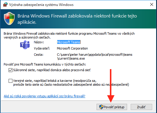 Ak sa pripájate prvýkrát, systém sa vás opýta, či chcete programu Teams povoliť takúto činnosť. Kliknite na Povoliť prístup.