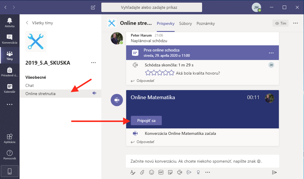 Pripojiť sa na online hodinu