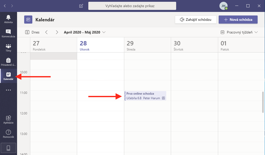 Ak máte viac naplánovaných hodín a chete si ich zobraziť prehľadne, kliknite na kalendár a zobrazia sa všetky naplánované online hodiny.