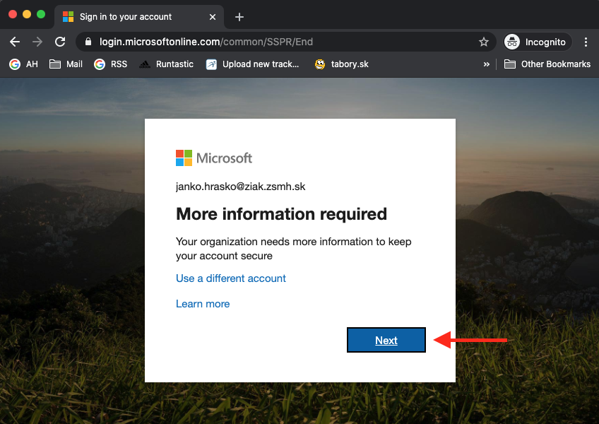 Pri prvom prihlásení bude potrebné zadať ešte zopár údajov. Kliknite na Next.