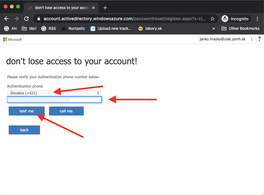 Zadajte kód slovenska +421 a napíšte vaše telefónne číslo bez nuly na začiatku v tvare 905 123 123. potom kliknite na text me.
