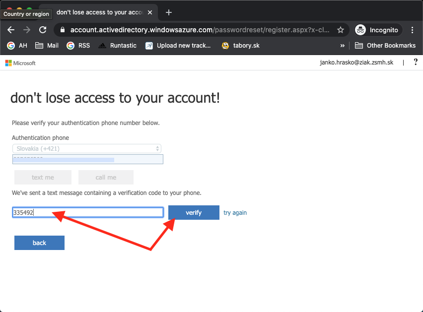 Kód ktorý vám príde SMSkou napíšte a kliknite na verify.
