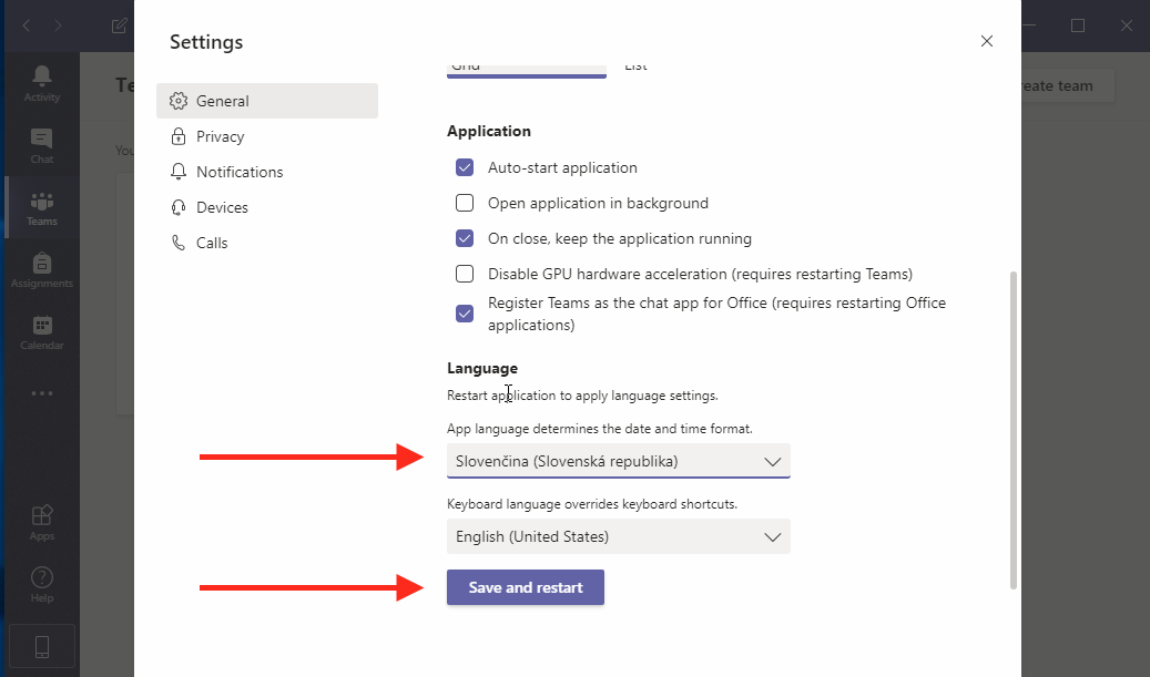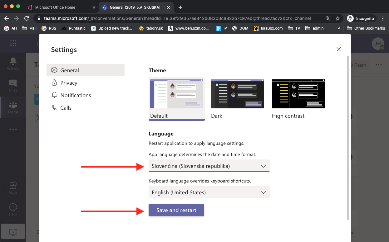 Následne vyberte Slovenčina a kliknite na Save and restart.