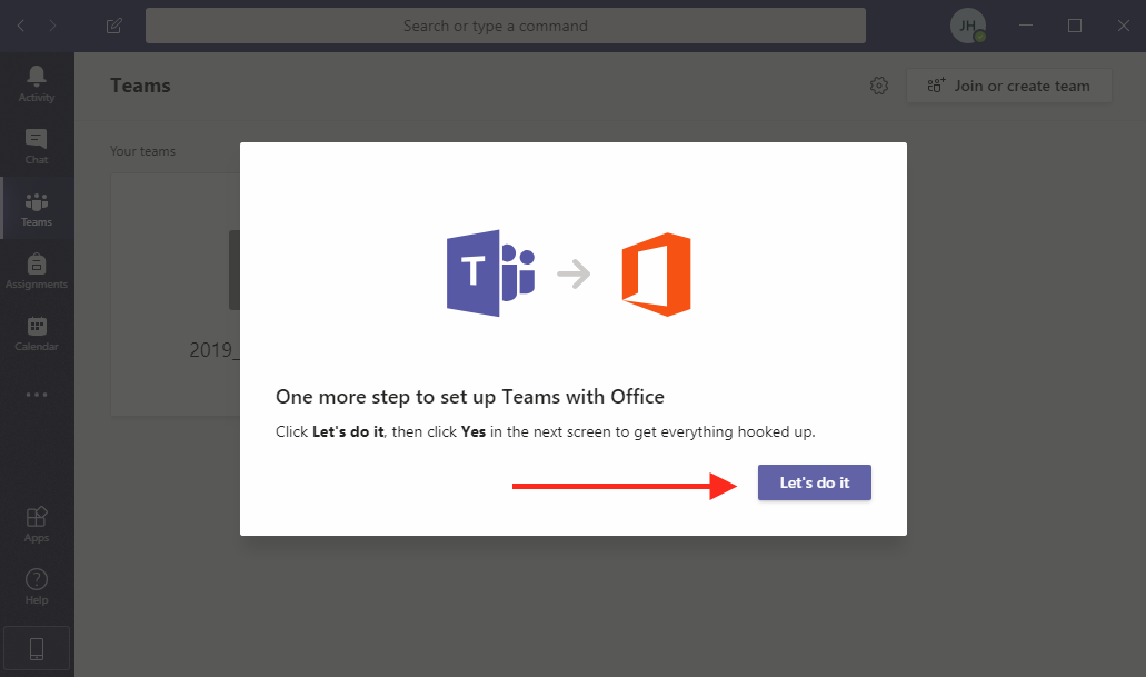V ďalších oknách kliknite na Lets do it. A v ďalšom okne povolte systému používať program Teams kliknutím na Áno.