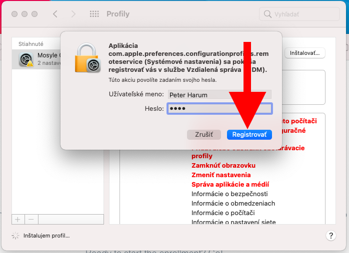 Každý apple počítač, treba zaregistrovať prostredníctvom registračného kódu, ktorý dostanete od správcu. Macbooky, ktoré boli kupované po roku 2021 sa automaticky registrovali už pri prvom zapnutí. Na starších sa treba zaregistrovať manuálne.
