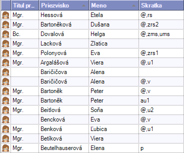 V škole máme niekoľko systémov, ktoré pracujú so zoznamami žiakov a učiteľov (Asc agenda – Edupage, Microsoft Office 365, Google Suite, zsmh.sk – školská stránka). Systémy sú naprogramované tak, aby čerpali vždy aktuálne údaje z Asc agendy. Preto ak sa zmenia údaje v Asc agende, automaticky sa zmeny prenesú do ostatných systémov. Aby sme vedeli správne v týchto systémoch zaradiť učiteľov, používajú sa pri učiteľoch tzv. skratky – oddelené čiarkou,