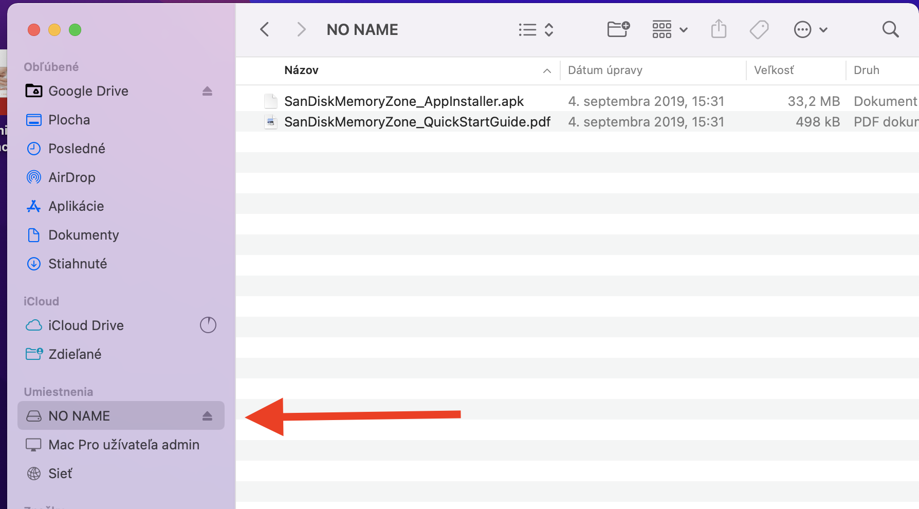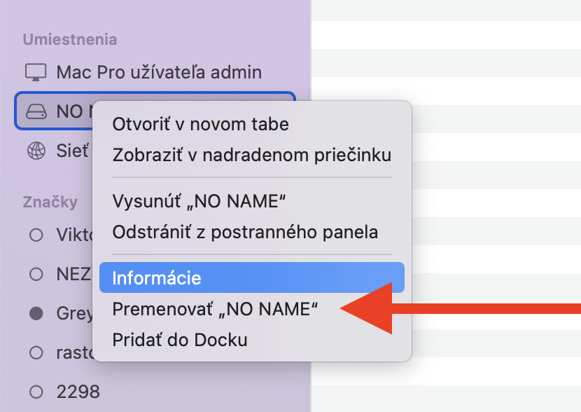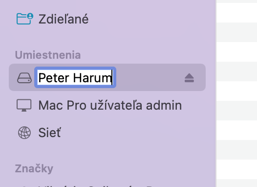 Otvorte si Finder na prácu so súbormi a v bočnej lište v sekcii Umiestnenia nájdete pripojený usb kľúč.