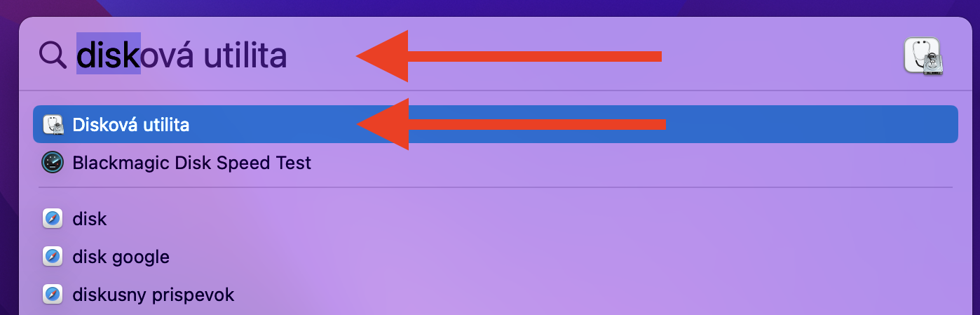 Začnite písať „disková utilita“, vyberte z nájdeného zoznamu a spustite diskovú utilitu