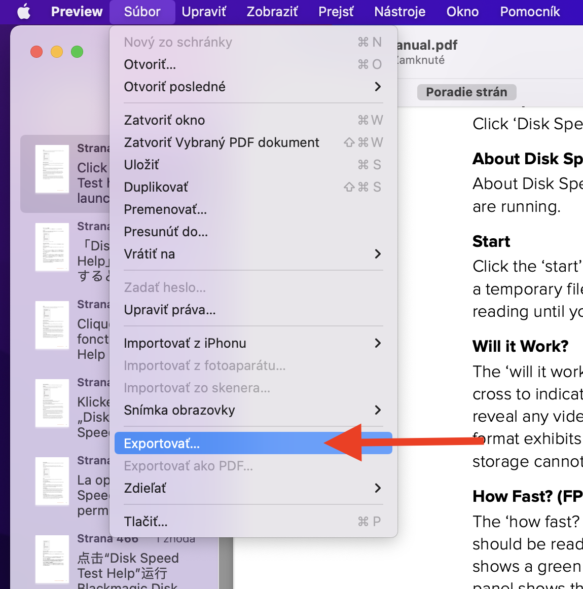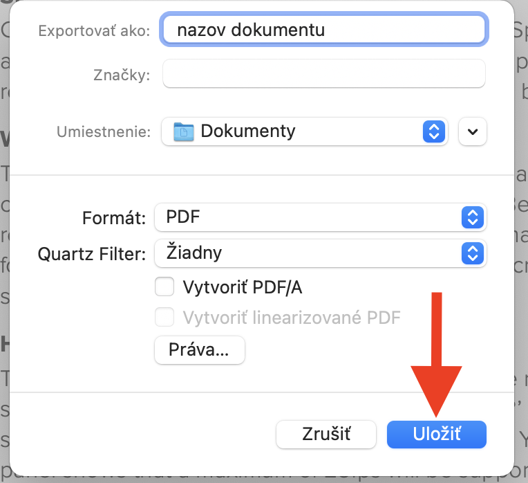 Akýkoľvek PDF dokument môžete jednoducho zaheslovať priamo v aplikácii Preview. Otvorte PDF dokument dvojklikom, otvorí sa aplikácia PREVIEW. Kliknite na Súbor – Exportovať.