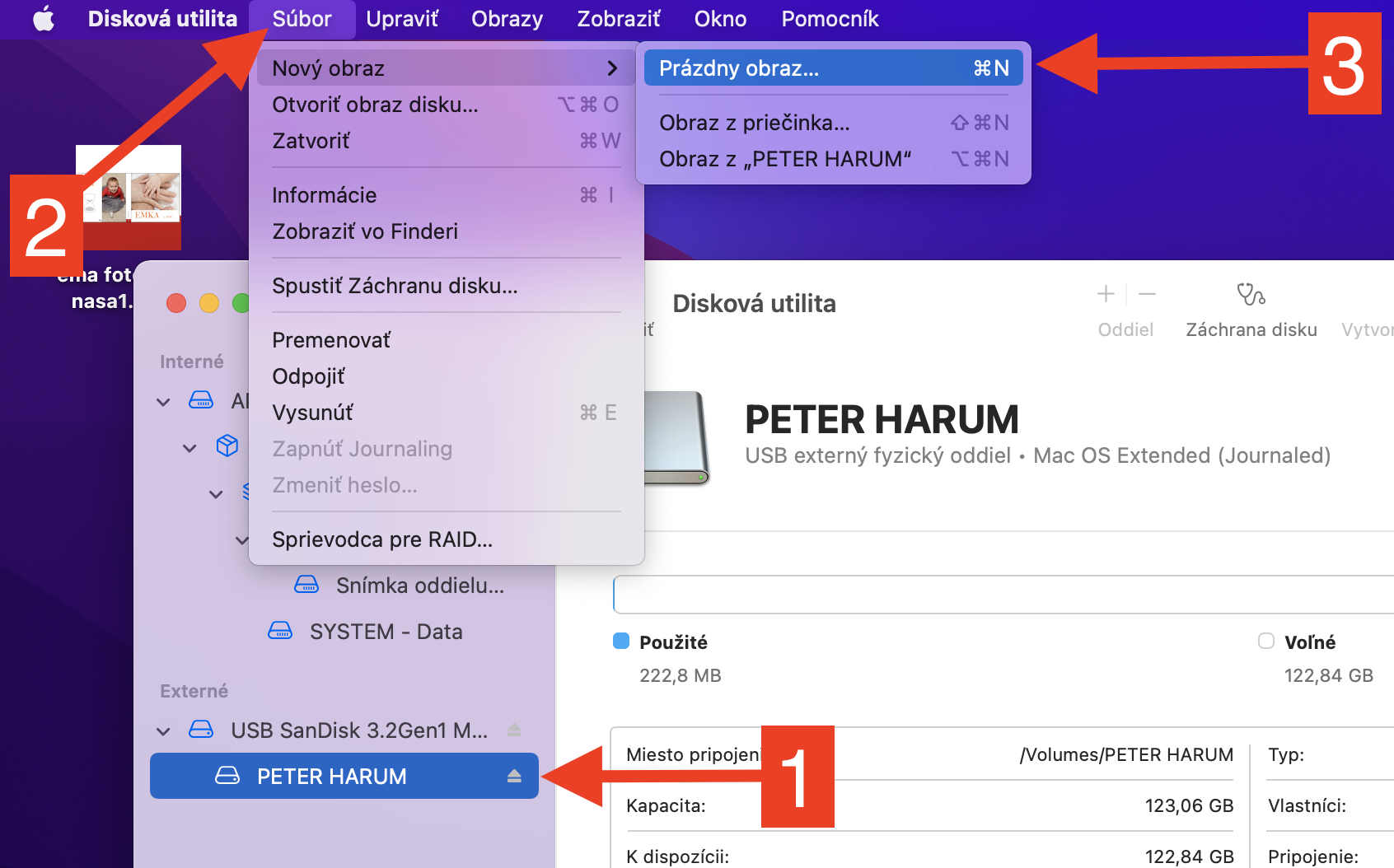 - Zvoľte v časti Externé oblasť vášho USB disku (klik)