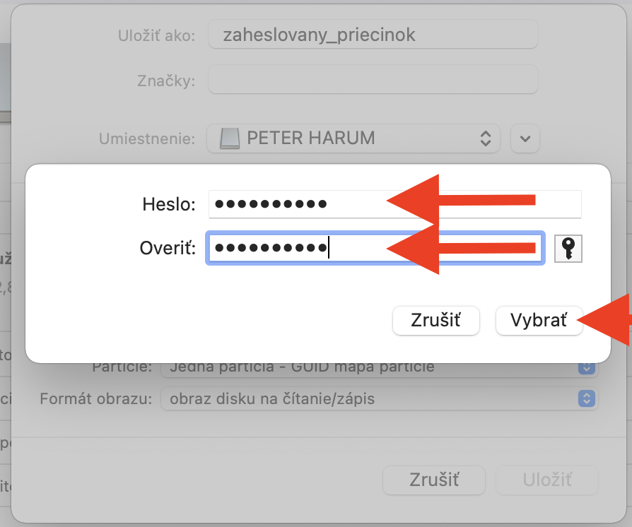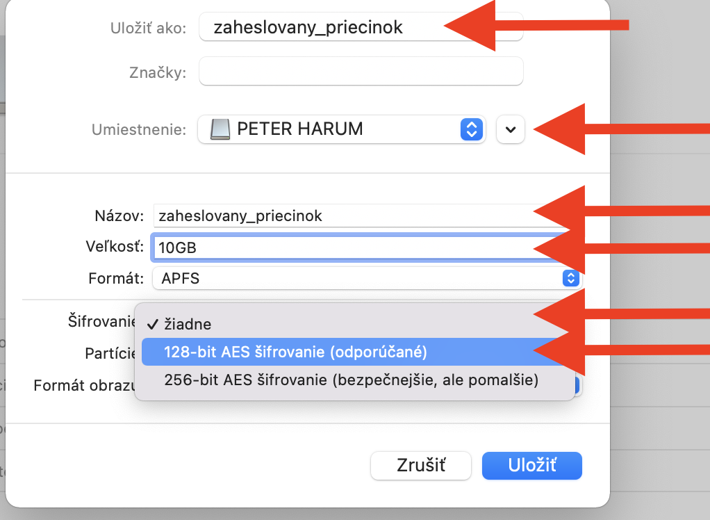 Posledný spôsob heslovania dokumentov je viacmenej pre pokročilých. Spočíva v tom, že si na USB kľúči vytvoríte priečinok (resp. oblasť, nazýva sa to aj obraz), ktorý bude zaheslovaný. Do takto zaheslovaného priečinku si môžete jednoducho nahrať dokumenty, ktoré sú veľmi dobre chránené zašifrovaním pomocou hesla. Takto zaheslovaný priečinok bude fungovať iba na počítačoch Mac a iba v prípade, že máte USB kľúč naformátovaný ako ExFAT alebo Macintosh Journaled.