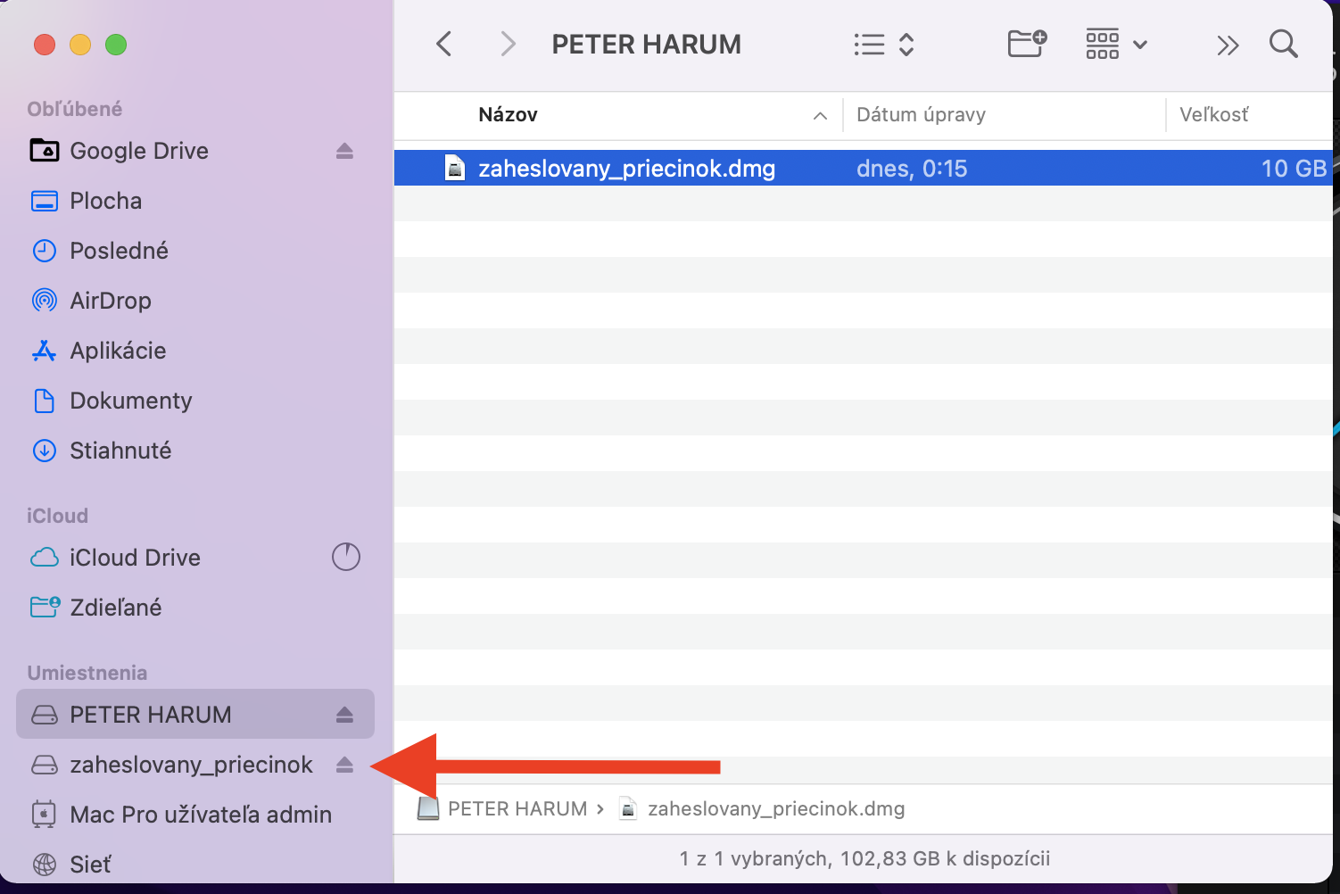 Priečinok sa zobrazí v bočnej lište a bude sa tváriť, ako ďalši pripojený disk. Jednoducho na neho kliknite a skopírujte do okna potrebné súbory a kliknite na ikonku odpojenia. Pred odpojením USB kľúča treba najprv odpojiť zaheslovaný priečinok.