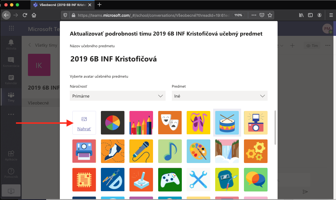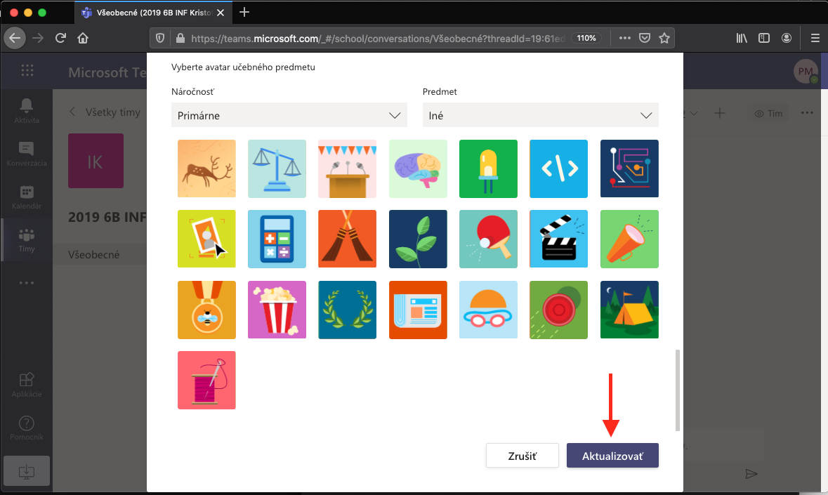 Potom kliknite na jeden z obrázkov, alebo pridajte vlastný. Tu môžete zmeniť aj názov tímu. Potom sa posuňte dole a kliknite na Aktualizovať.