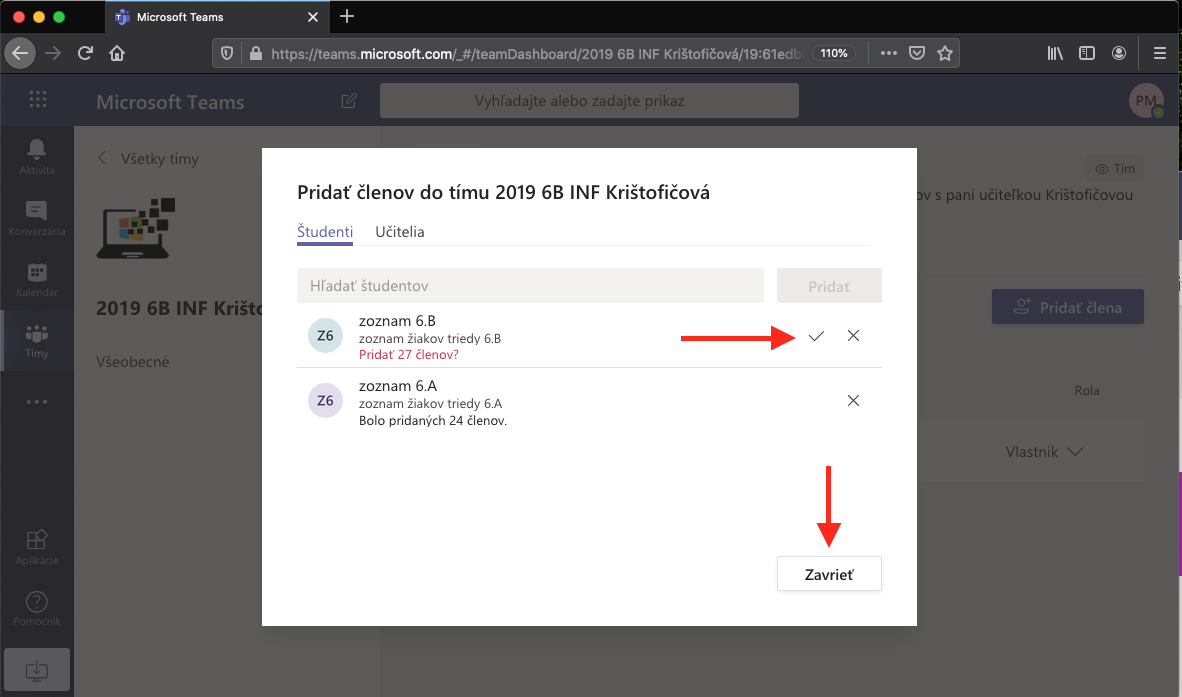 Potvrďte, či chcete pridať celý zoznam a kliknite na Zavrieť.
