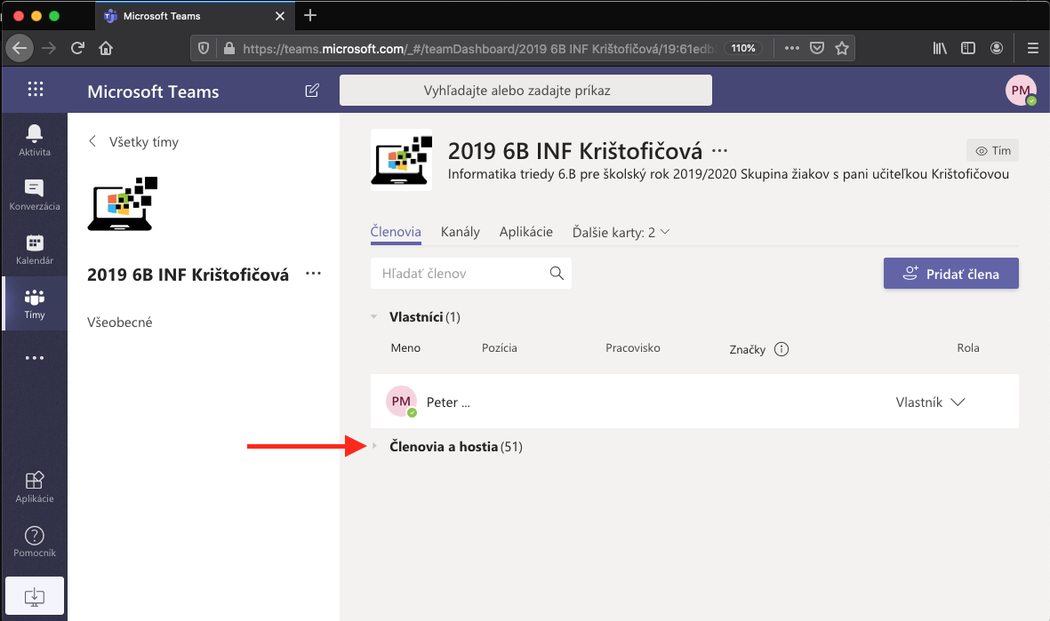 Tieto dva kanály by bolo vhodné, aby mala pridaná každá skupina rovnako. Žiaci tomu budú rozumieť, keď to budú mať nastavené rovnako v každom tíme. Kaná Online stretnutia bude slúžiť na výuku online a kanál Chat bude pre voľnú diskusiu žiakov medzi sebou.
