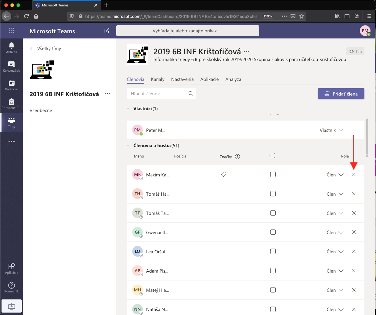 V zozname žiakov môžte kliknutím na krížik vymazať žiakov, ktorí tam nepatria.