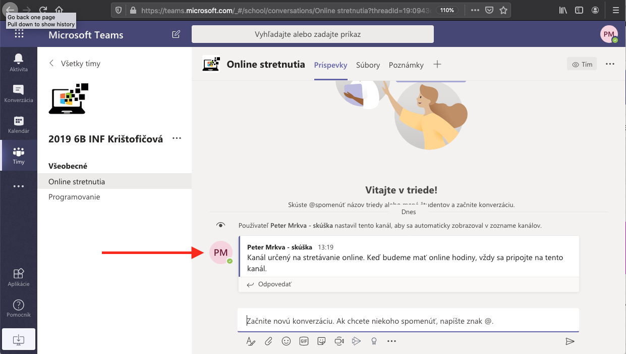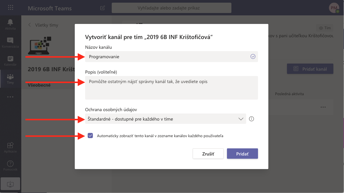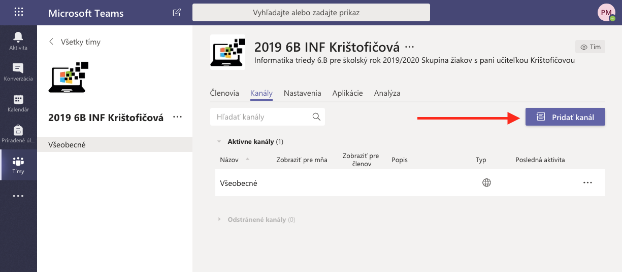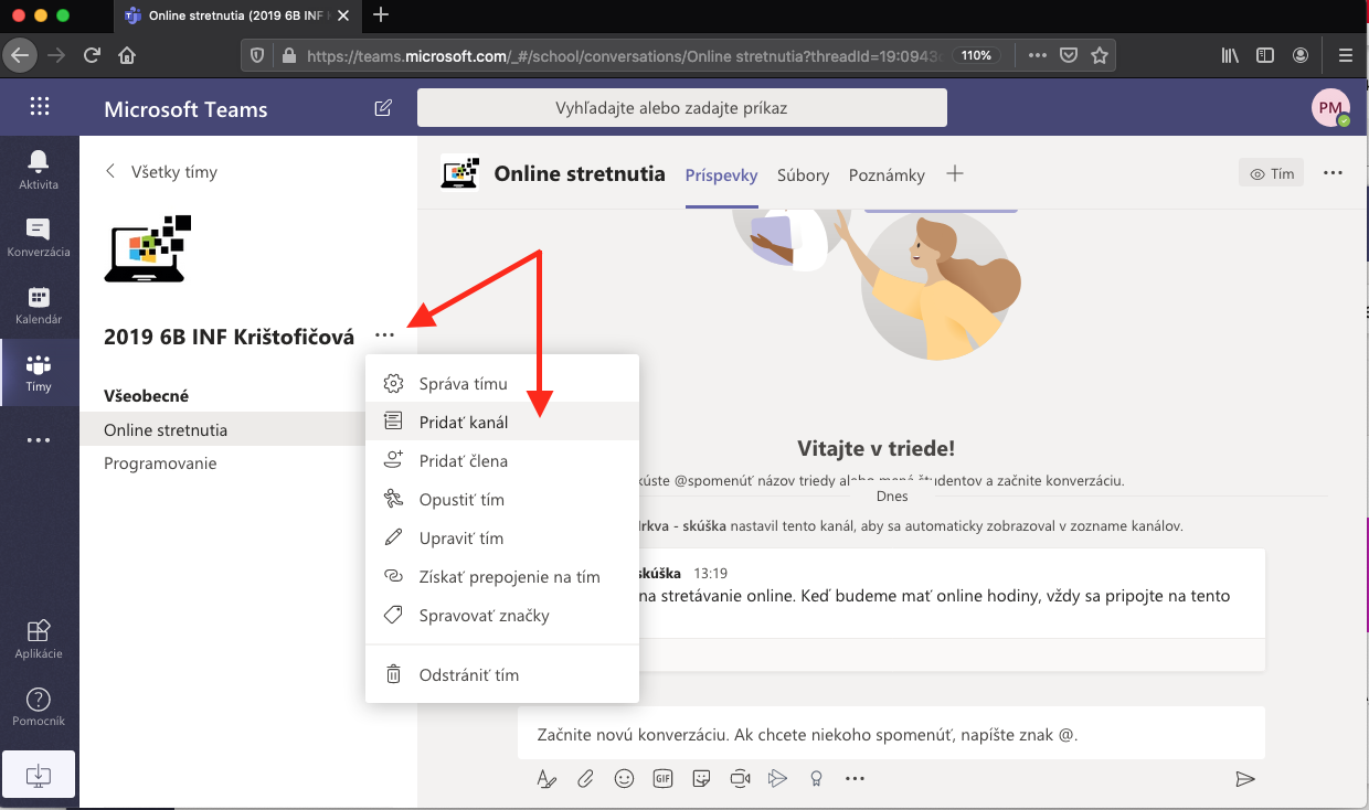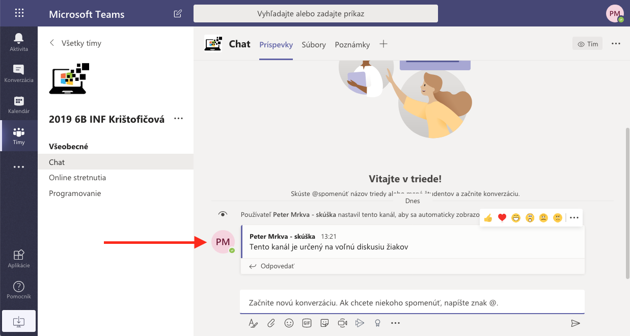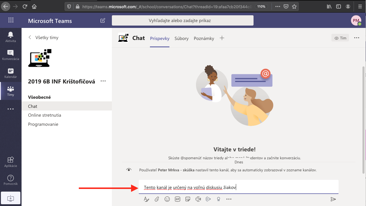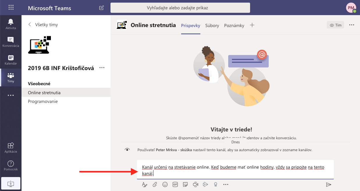 Vždy keď vytvoríte kanál, napíšte do kanála prvý príspevok, v ktorom vysvetlíte na čo kanál slúži. Aby tomu žiaci rozumeli.