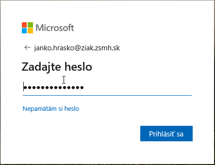 Takže žiak Jan Mrkvička má prihlasovacie meno jan.mrkvicka@ziak.zsmh.sk