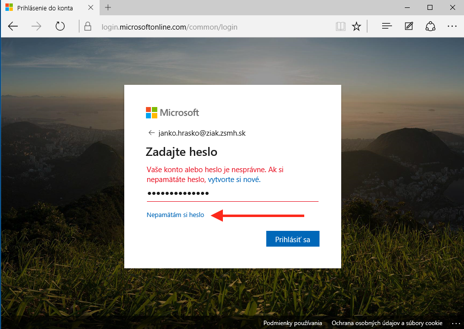 Potom klinite na Nepamätám si heslo (anglicky lost password)