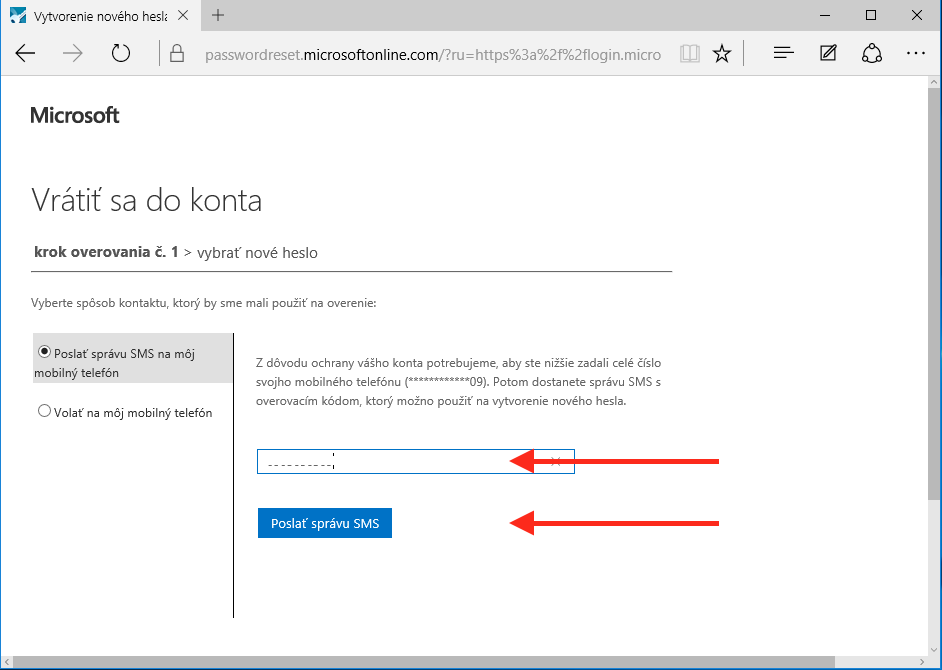 Zadajte to isté telefónne číslo, ktoré ste zadávali pri registrácii. Ako pomôcku vidíte posledné 2 čísla, ktorým končí vaše telefónne číslo. A kliknite na poslať správu.