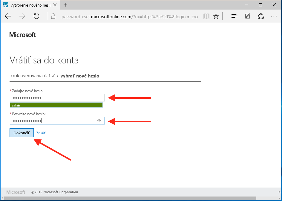 Teraz už stačí len napísať nové heslo. Nové heslo zopakujte aj do riadku nižšie.