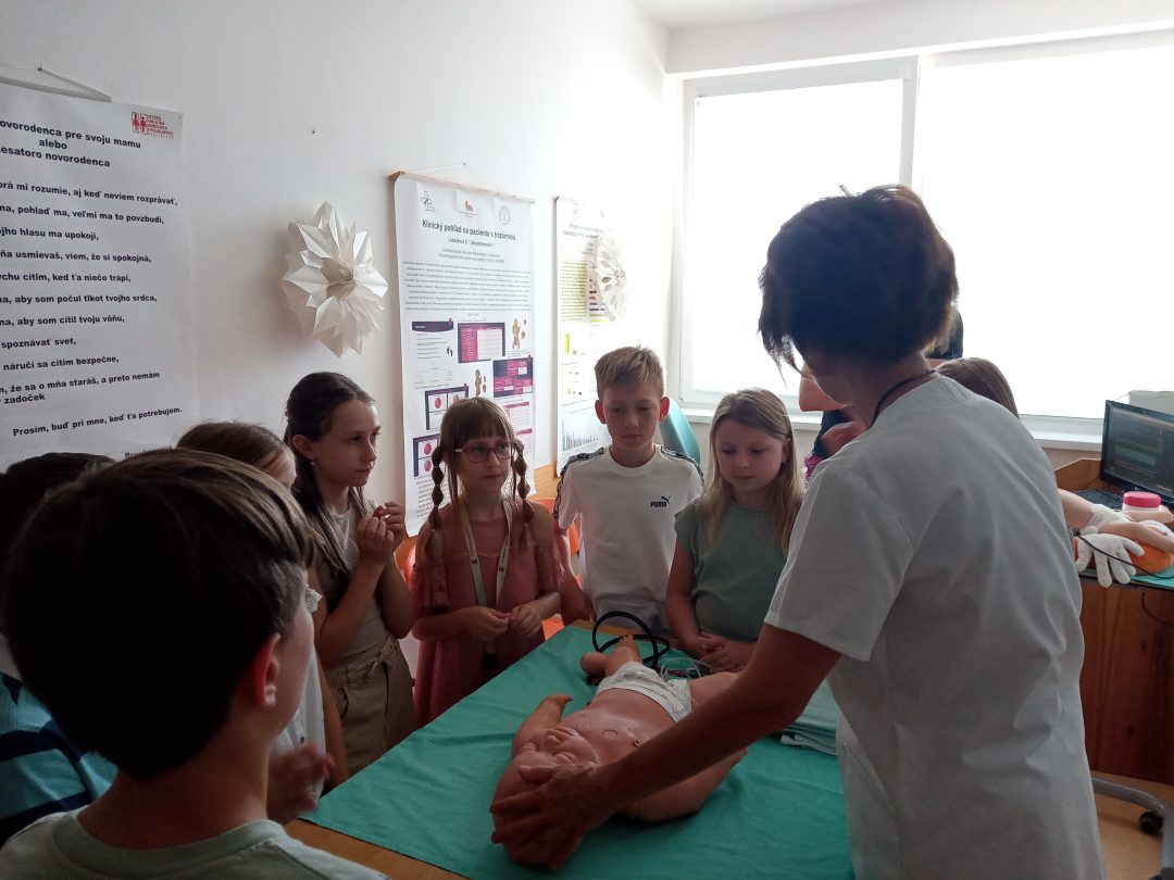 Dňa 4.6.2024 sa žiaci 4. a 7. ročníka zúčastnili stretnutia s pani prof. MUDr. Ingríd Brucknerovou, PhD. a MUDr. Dušanom Dobošom z Neonatologickej kliniky intenzívnej medicíny LF UK a NÚDCH na Kramároch pod názvom Ahoj, ja som novorodenec. Žiaci 4. ročníka v úvode predniesli báseň venovanú novorodencovi, ktorú sami napísali. Dozvedeli sa, čo je to novorodenec. Diskutovali o prejavoch novorodenca, ale aj o formách spojenia plodu s telom matky pred narodením. Žiakov zaujímalo, prečo novorodenec plače, či sa vie usmievať a ako reaguje na chlad. Žiaci videli na s pomocou simulátorov v akej polohe je novorodencovi najlepšie a čo je to „hniezdo“. Žiaci 7.ročníka predstavili inkubátor 21. storočia, ktorý sami vymysleli a vyrobili. Naučili sa, ako si správne merať srdcovú a dychovú frekvenciu. Ďalšie otázky boli orientované na výživu novorodenca, stravovacie návyky, správne polohovanie dieťaťa a držanie na rukách. Na záver stretnutia žiakov čakal vedomostný kvíz, v ktorom všetci uspeli a dostali sladkú odmenu.