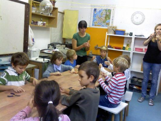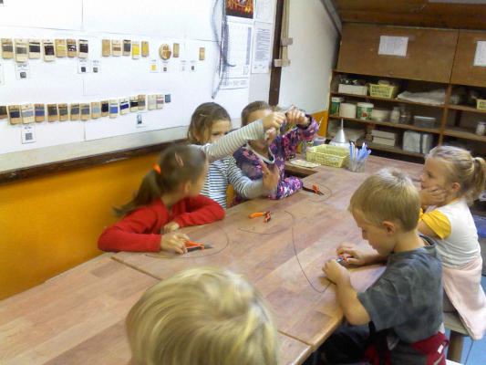 Najskôr sa oboznámili s vlastnosťami drôtu, potom si vyrobili svoje vlastné rybičky a srdiečka. Napriek nepriazni počasia, v ktorom sme sa vybrali do CVČ, sa deťom táto netradičná forma vyučovania veľmi páčila.