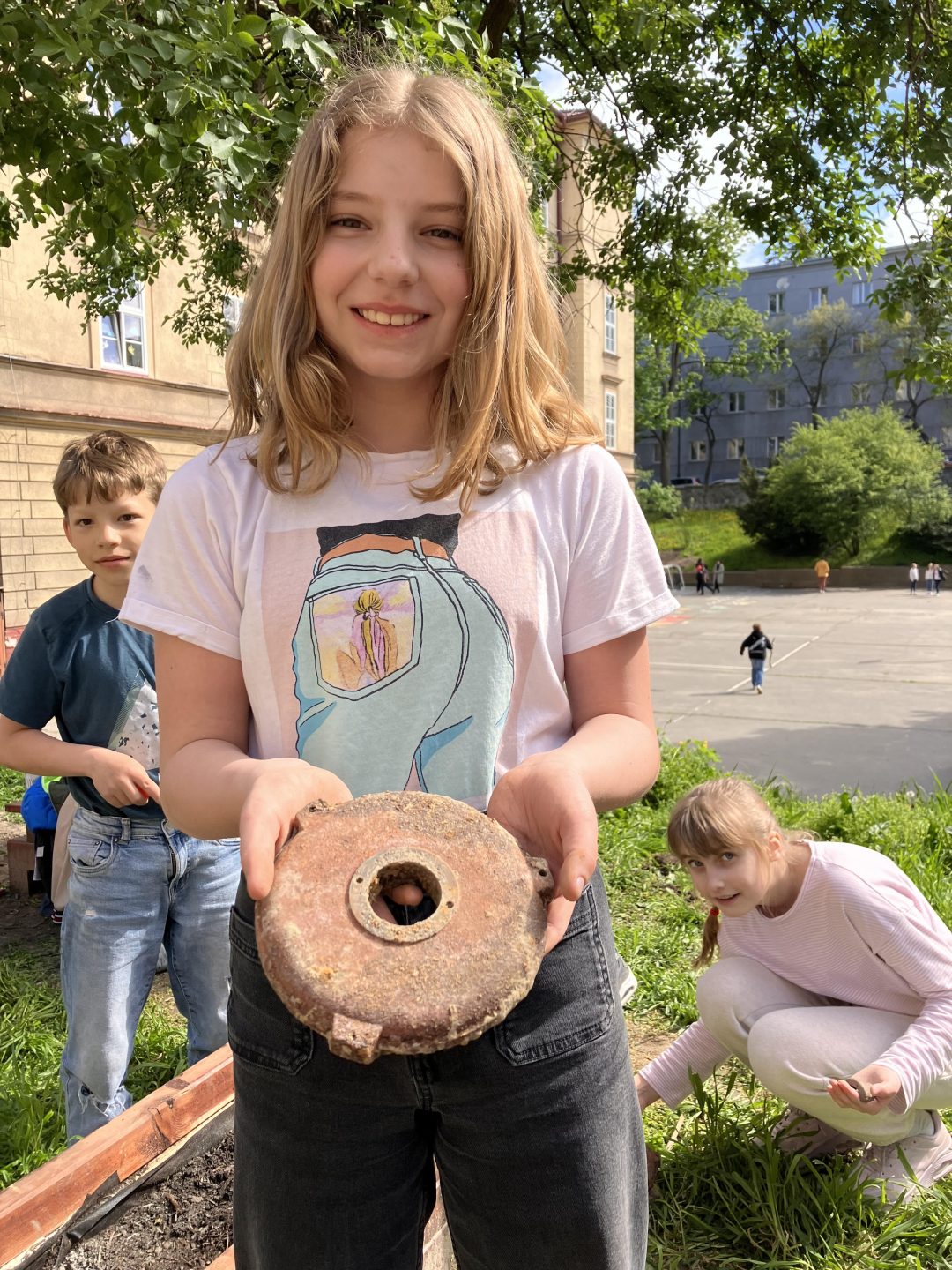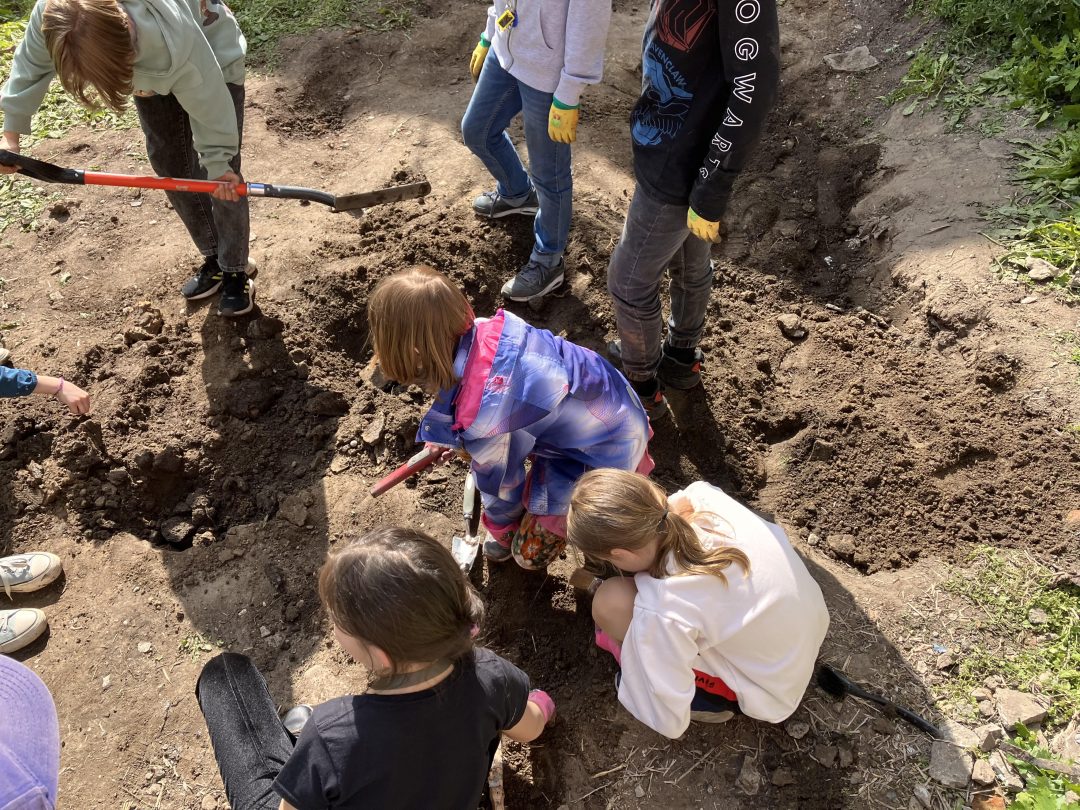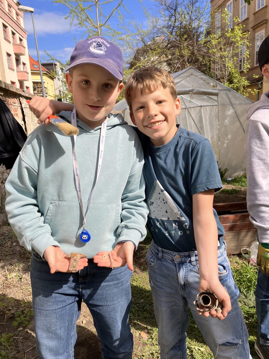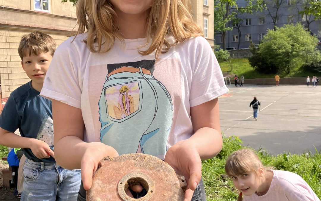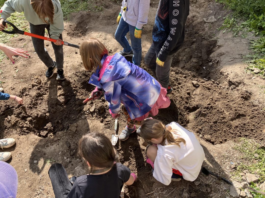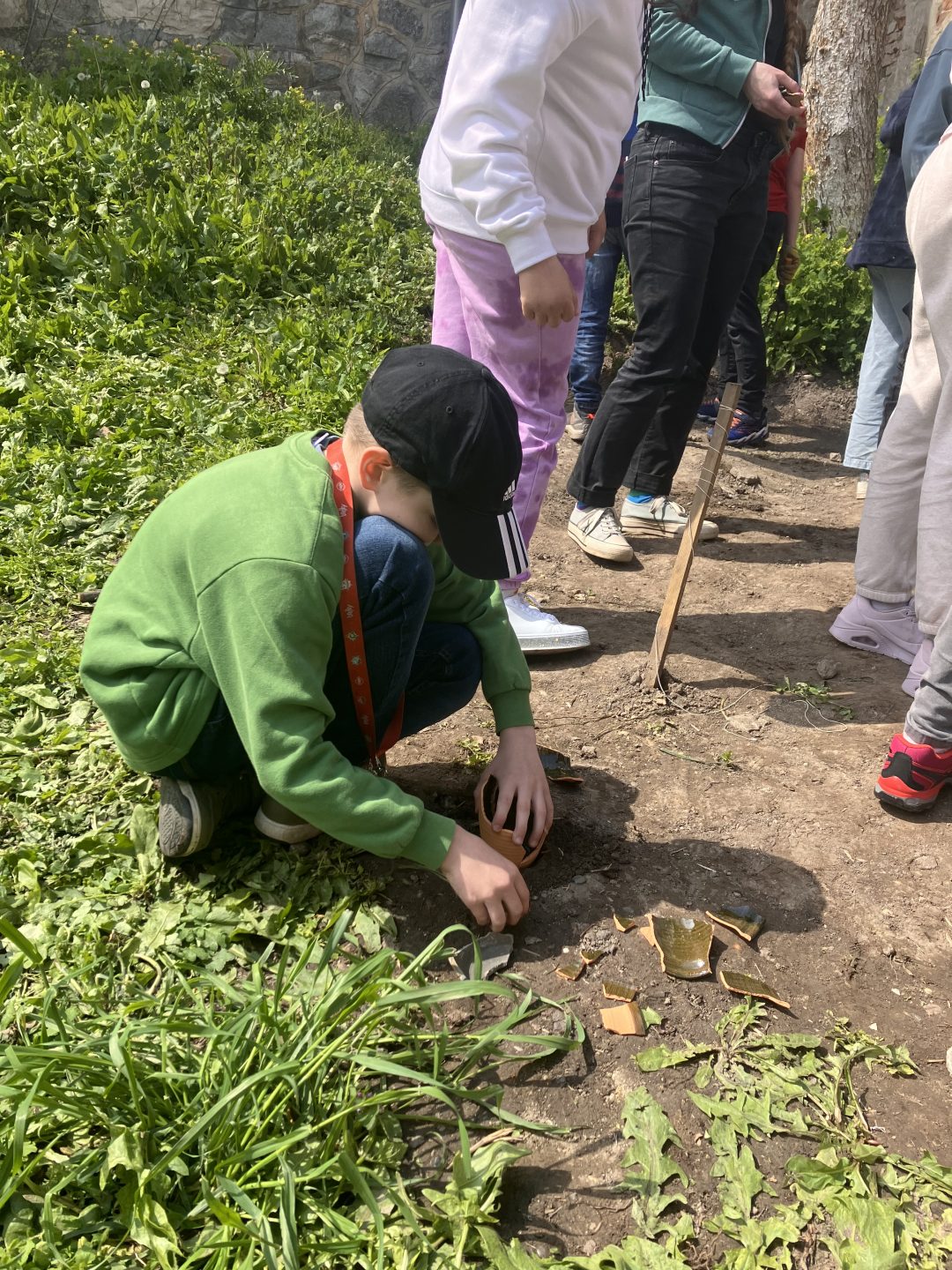 Záhradnícke aktivity v poobedňajších hodinách počas ŠKD priniesli nečakané nálezy, vďaka ktorým sme sa zoznámili s archeológmi z Krajského pamiatkového úradu.