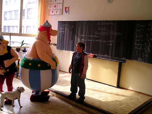 Asterix a Obelisk, postavičky známeho francúzskeho komiksu Goscinyho a Underzoa prišli na Slovensko uviesť svoj nový film Asterix a Vikingovia. Žiaci 5.ročníka sa stretli s hlavnými postavičkami v piatok 20.10.2006. Tí, ktorí mali šťastie vyhrali vstupenky na premiéru tohto filmu.