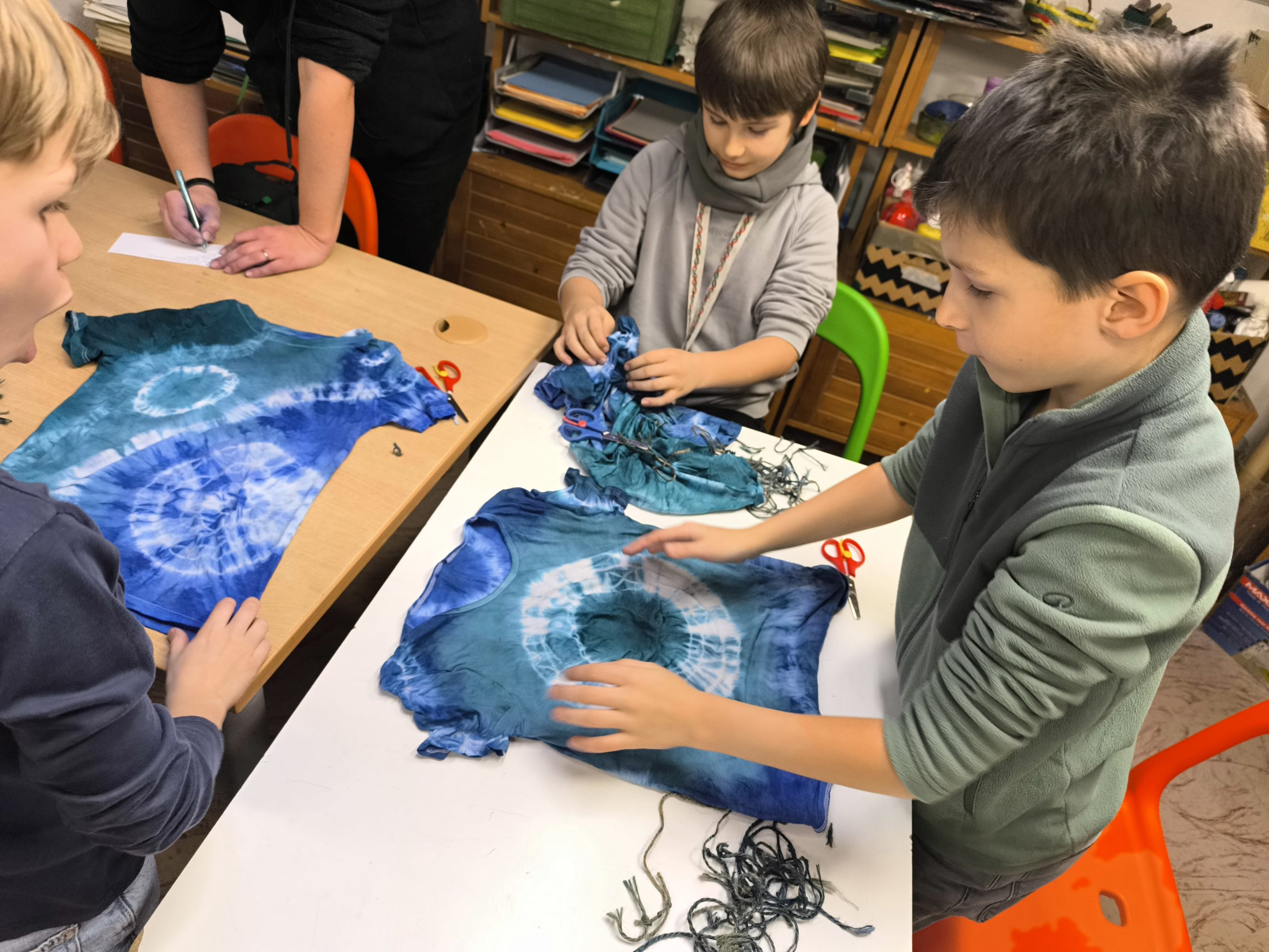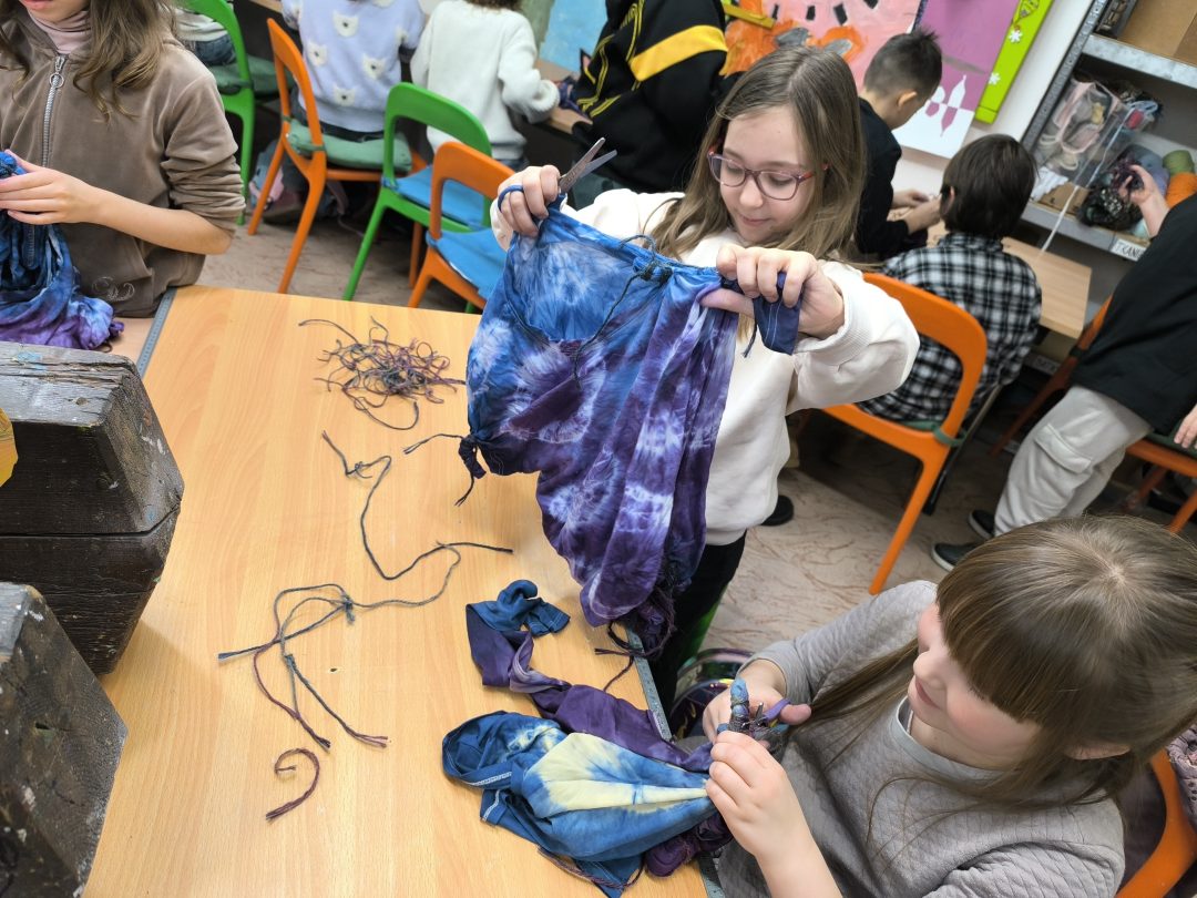 Tretiaci sa vybrali na alternatívnu hodinu výtvarnej výchovy do Centra voľného času na Štefánikovej ulici. Témou hodiny bolo batikovanie. Priniesli si bavlnené tričká, tielka, košele, dokonca aj obliečky na vankúše. Pozorne počúvali Tinku, ktorá im podrobne vysvetlila pracovný postup. Usilovne skladali a viazali špagátik za špagátikom, aby im potom Tinka výrobky zafarbila v pripravených farbách. Po prestrihnutí a rozmotaní špagátikov sa v miestnosti ozýval detský jasot, pretože predtým obyčajné, biele veci bez fantázie, teraz hrali nádhernými vzormi.