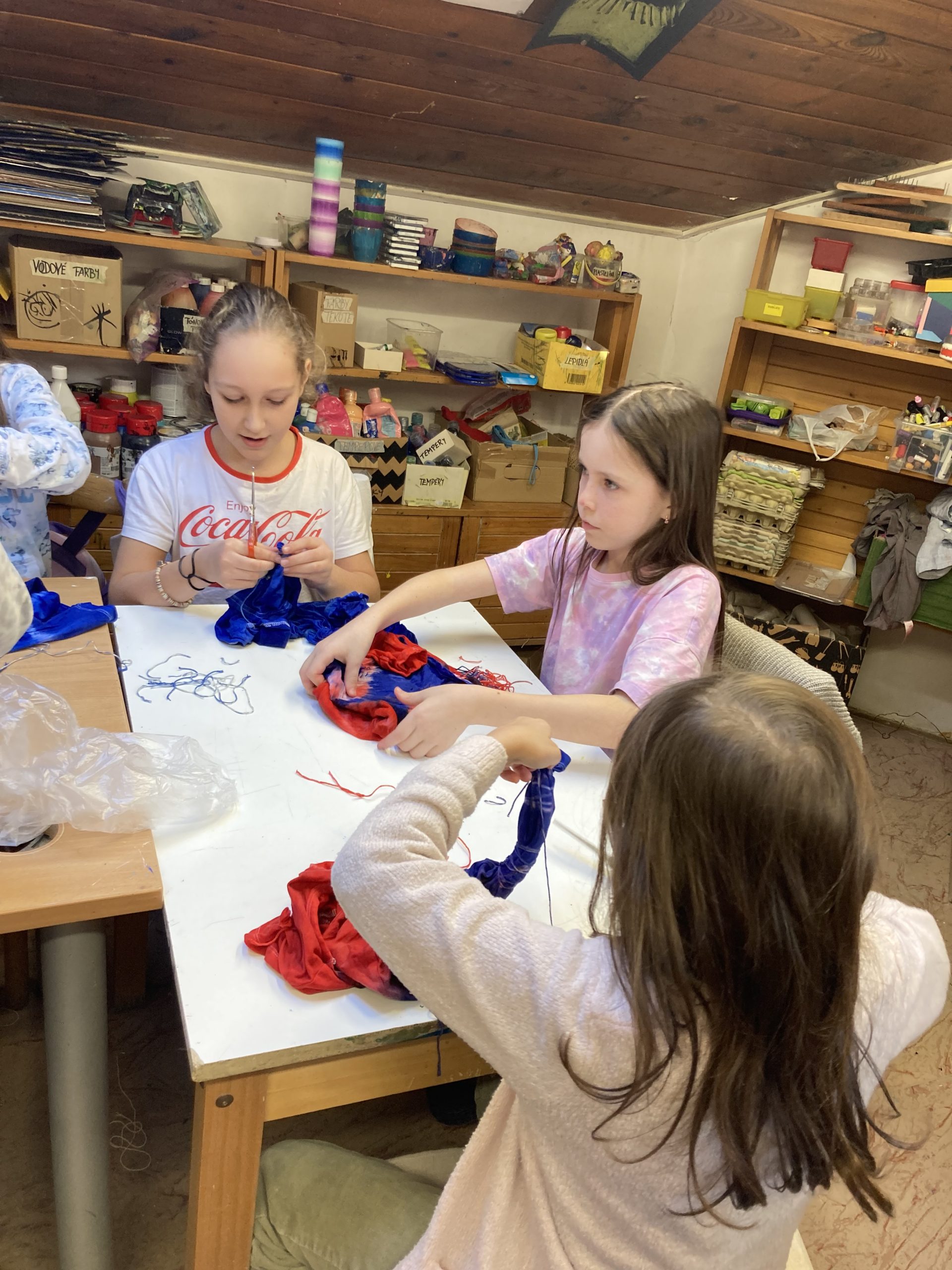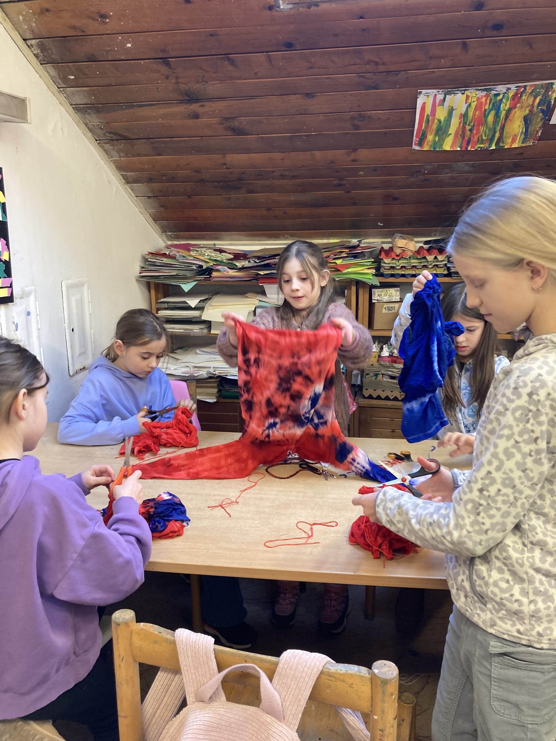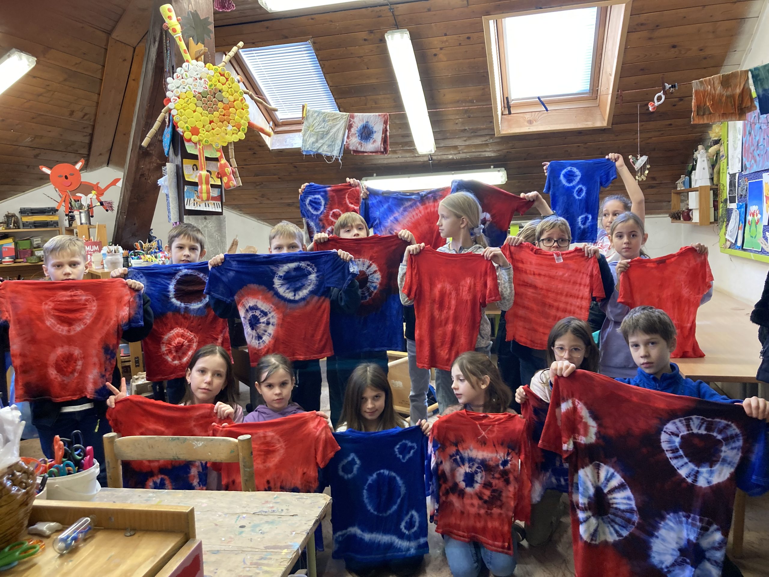 Žiaci z 3.A si vyskúšali v Centre voľného času na Štefánikovej ulici novú výtvarnú techniku – batikovanie. Po náročnom viazaní uzlíkov na tričká netrpezlivo čakali na výsledné produkty svojej práce. Po rozstrihaní špagátikov boli milo prekvapení zo svojich výtvorov. Blíži sa jar, nové tričká sa zídu.