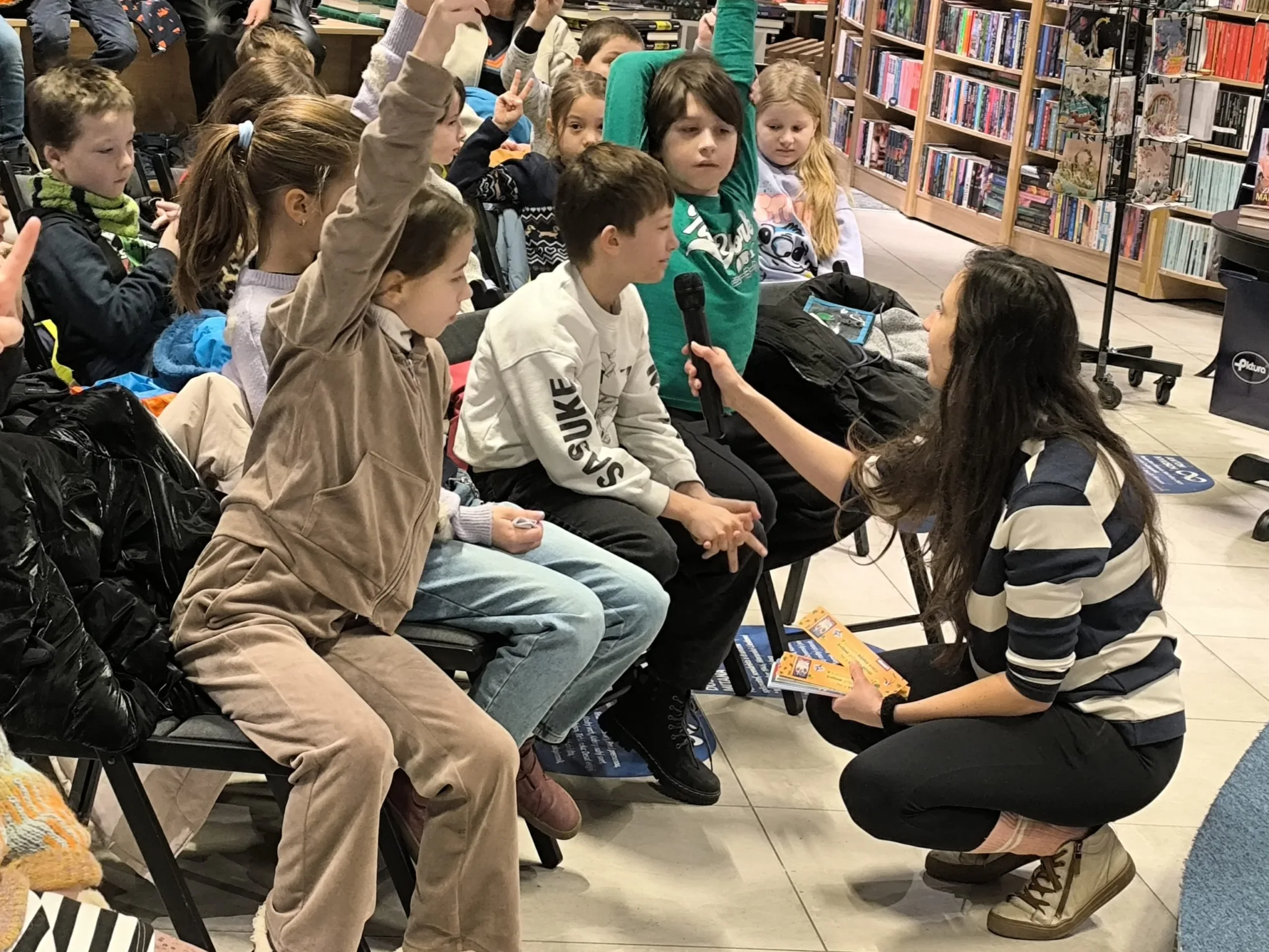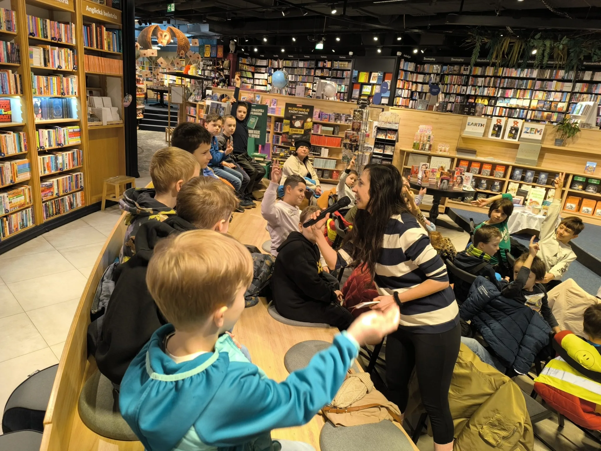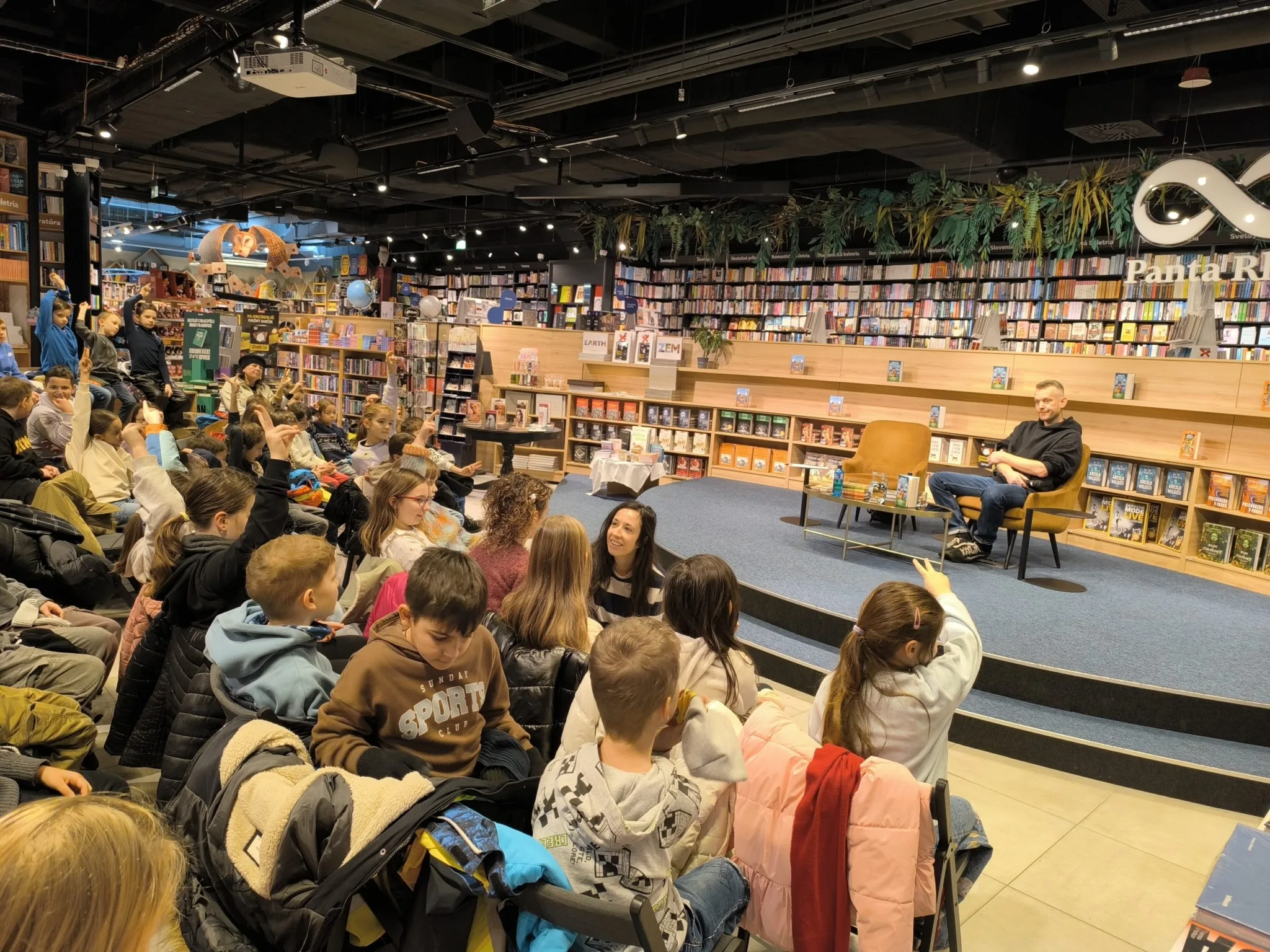 V stredu 21. 1. 2026 sa tretiaci a druháci zúčastnili na besede s pánom vychovávateľom v priestoroch Panta Rhei v Auparku. Besedu moderovala Veronika Sebechlebská, ktorá autorovi kládla otázky o tom, ako vznikal príbeh a kde všade čerpal inšpiráciu.
