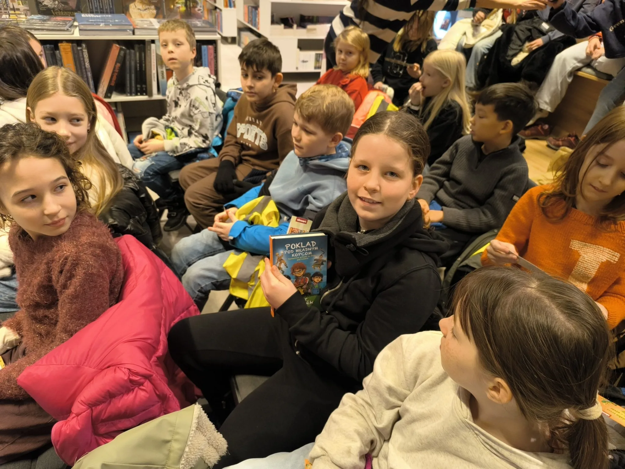 Počas besedy deti odpovedali na rôzne témy a za svoje zaujímavé postrehy dostali pekné záložky do kníh. Dve dievčatká boli dokonca odmenené samotnou knižkou. Na záver podujatia pán vychovávateľ prečítal úryvok z knihy, čím deti navnadil na čítanie. Mnohé sa už teraz nevedia dočkať, ako sa celý dobrodružný príbeh skončí.