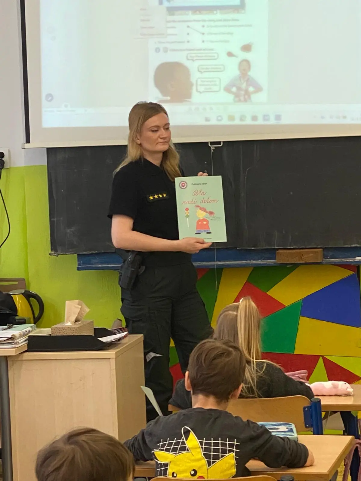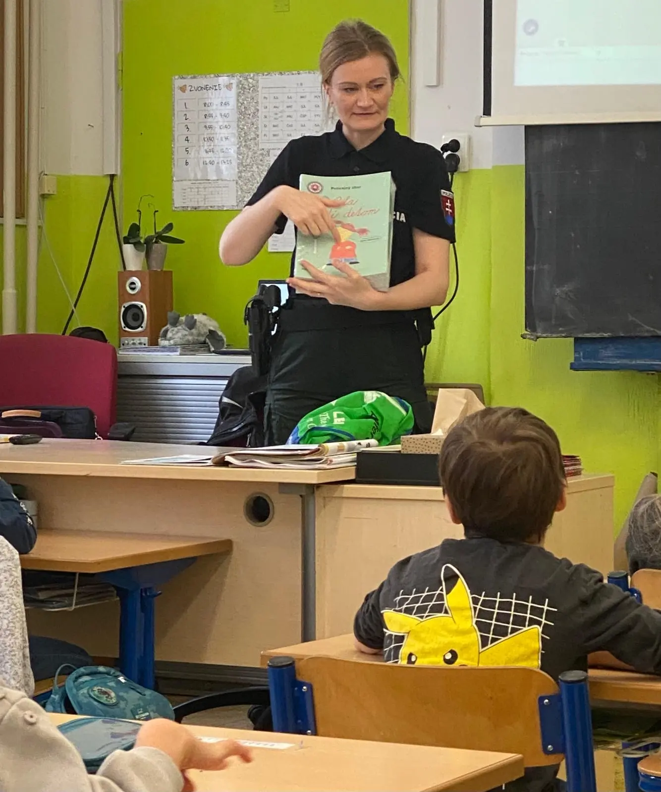 Bezpečnosť detí je pre nás prioritou, a preto sme spestrili náš program o dôležité a pútavé stretnutie. Počas návštevy policajtky sa deti formou besedy dozvedeli, čo je úlohou polície, aké majú pomôcky a na čo všetko si musia dávať pozor počas cestnej premávky nielen vodiči dopravných prostriedkov, ale aj chodci.