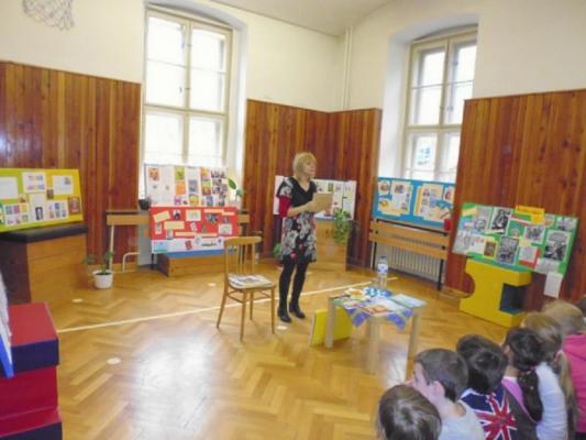 Preto sme sa veľmi potešili, že prijala naše pozvanie. Porozprávala nám o sebe, o vzniku, histórii a súčasnosti časopisu Slniečko. Každá trieda si prichystala obrázkový panel so svojím spisovateľom. Pani Kepštová deťom prezradila zaujímavosti z ich života a doplnila tak chýbajúce informácie. Nevyhla sa ani zvedavým otázkam a trpezlivo na ne odpovedala.