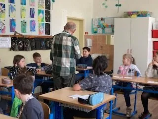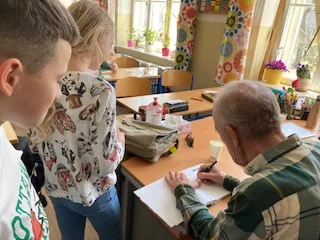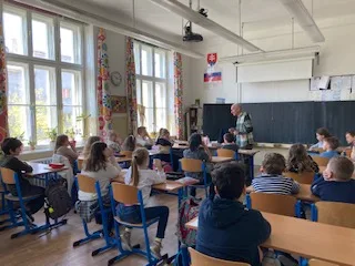 Žiakov v 4.A navštívil spisovateľ Dušan Dušek. Porozprával im o svojom živote a tvorbe. Trpezlivo a pútavo odpovedal na všetky zvedavé otázky.