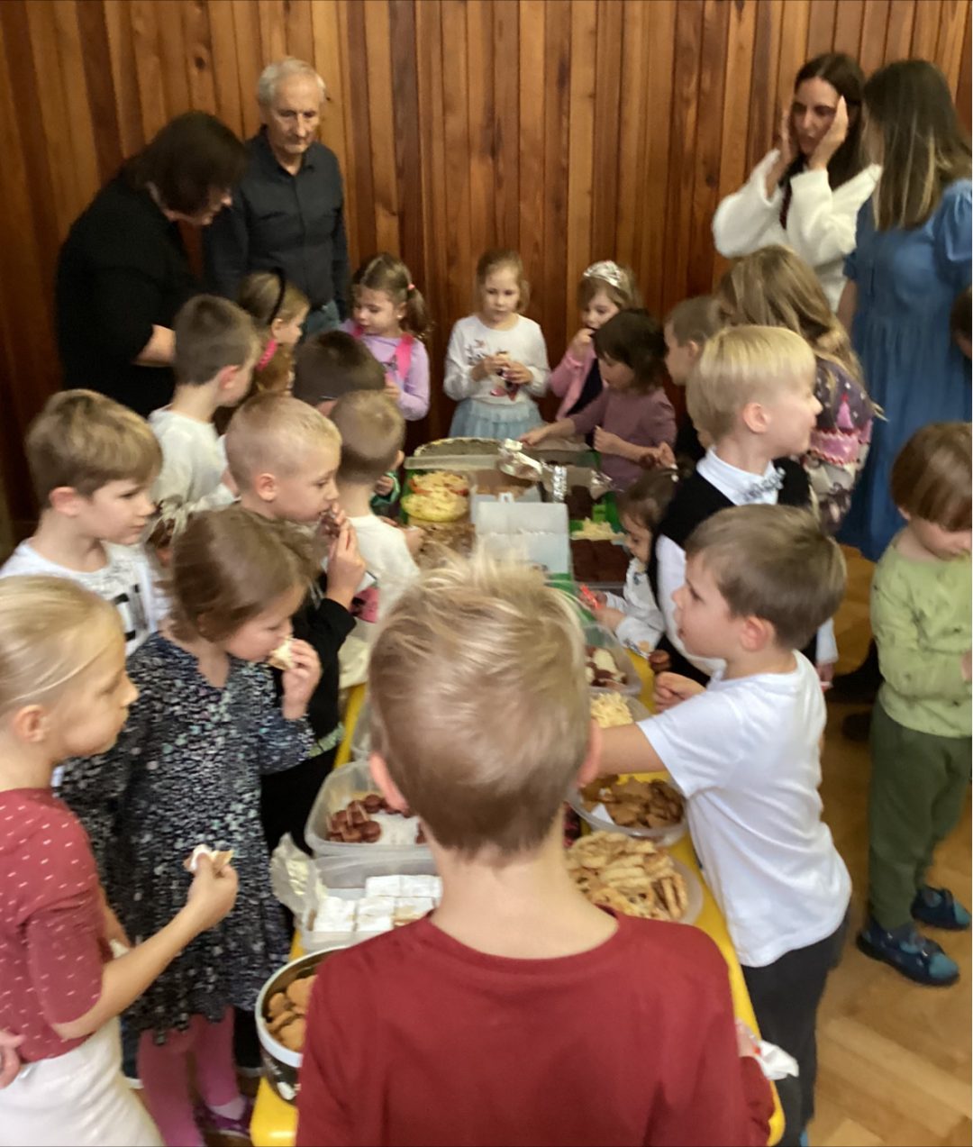 V októbri, Mesiaci úcty k starším, sme si do našej materskej školy pozvali babičky a deduškov či starké a starkých našich škôlkarov, pre ktorých sme si pripravili krátke vystúpenie. Už tradične sme toto milé podujatie spojili s ochutnávkou výborných koláčov, ktoré šikovné babičky či starké napiekli. Po piesňach a tanci sa tak našou telocvičňou niesla veselá vrava našich deťúreniec a milých ctených hostí, spojená s maškrtením koláčových dobrôt od výmyslu sveta.