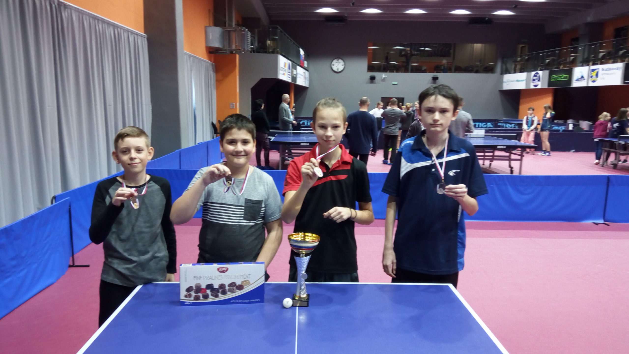 Naše družstvo v zložení Michal Svetík, Alex Janikovič (obaja 8.B), Tomáš Mozola a Marek Choma (obaja 6.B) sa ako víťaz okresného kola zúčastnilo na krajskom kole Stolnotenisového turnaja, ktoré sa uskutočnilo v priestoroch Stolnotenisového centra. V konkurencii siedmich družstiev sa umiestnili sa na výbornom 3. mieste, keď nad ich sily boli len nasadené družstvá z Devínskej Novej Vsi a Pezinka. Chlapcom gratulujeme a ďakujeme za skvelú reprezentáciu.