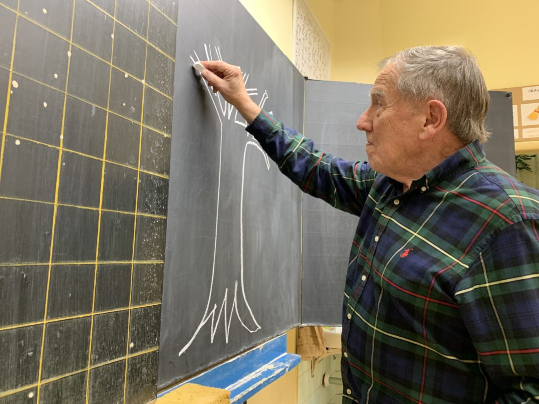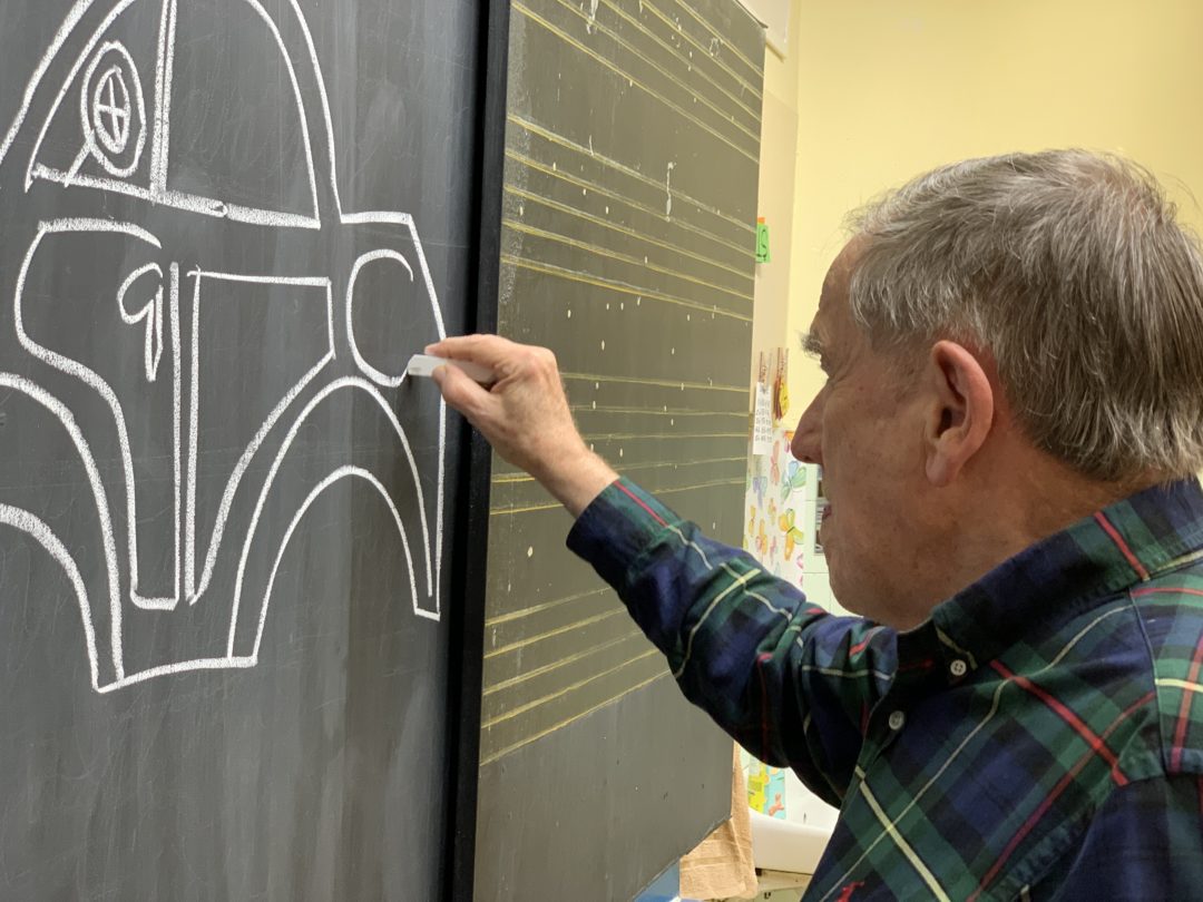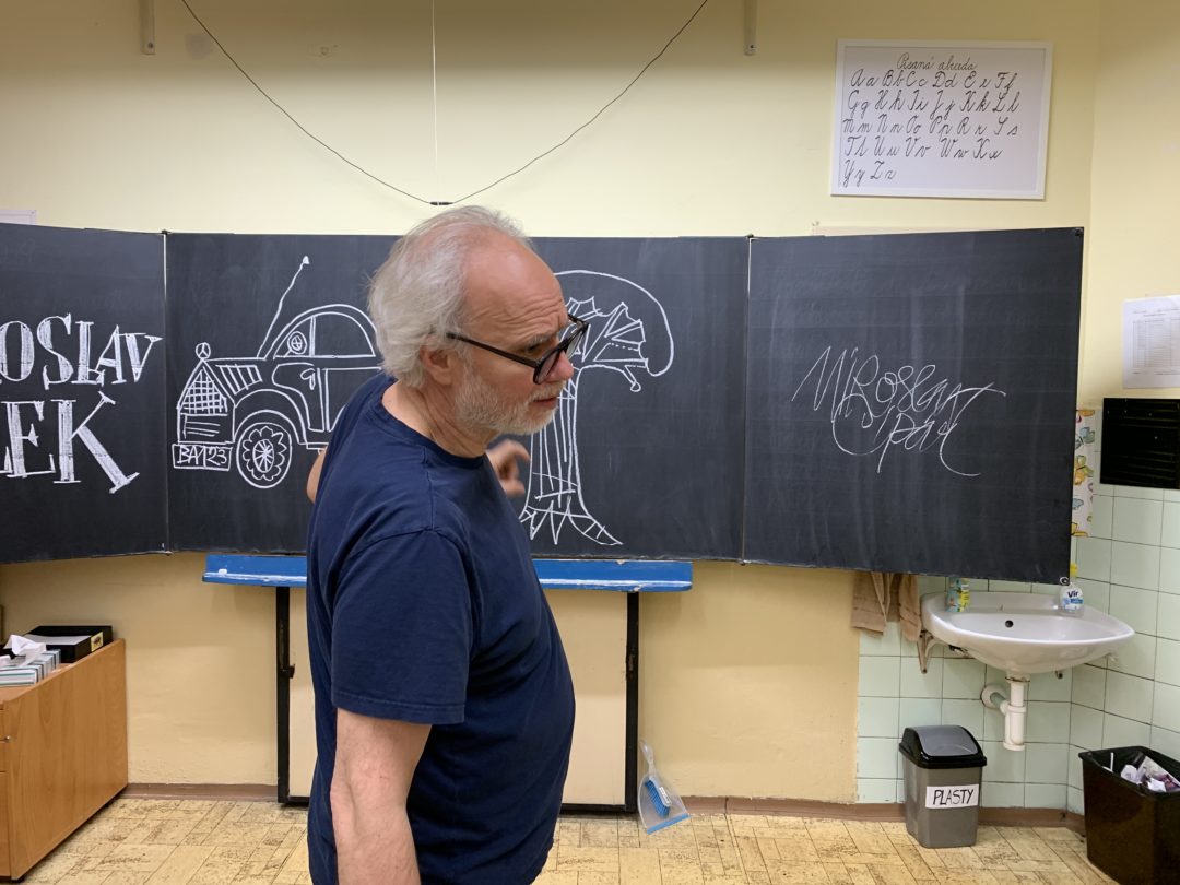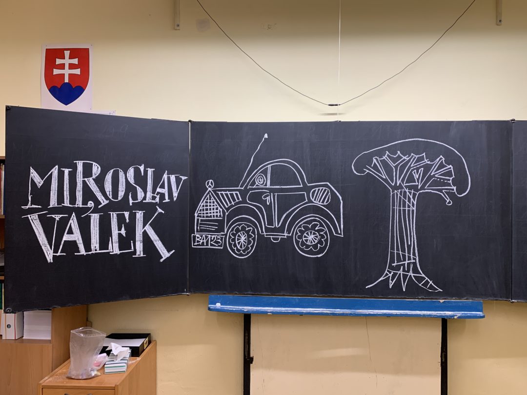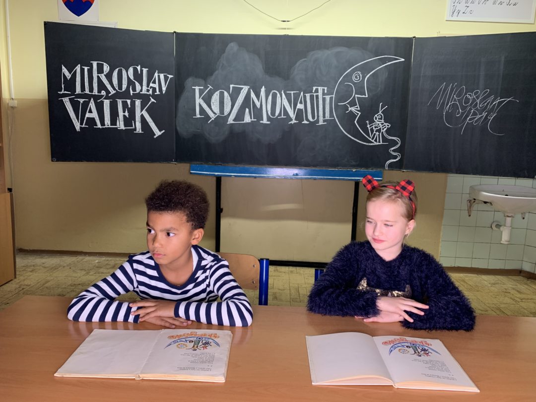 Pán Cipár zobral do ruky bielu kriedu a namaľoval na tabuľu v 2. B ilustrácie k básničkám Neviditeľné auto, viditeľný strom a Kozmonauti a v budove našej školy na Podjavorinskej sa začalo natáčanie Chvíľky poézie.