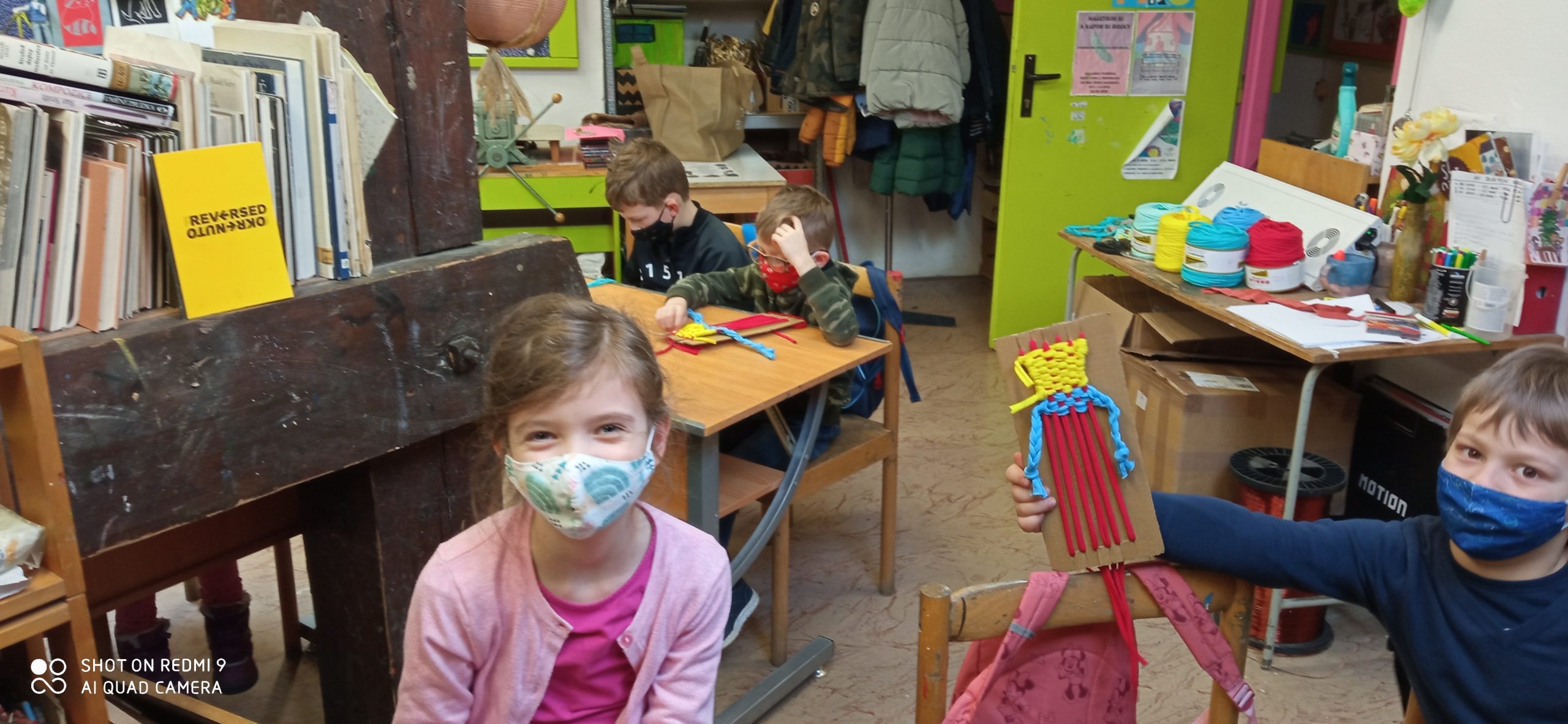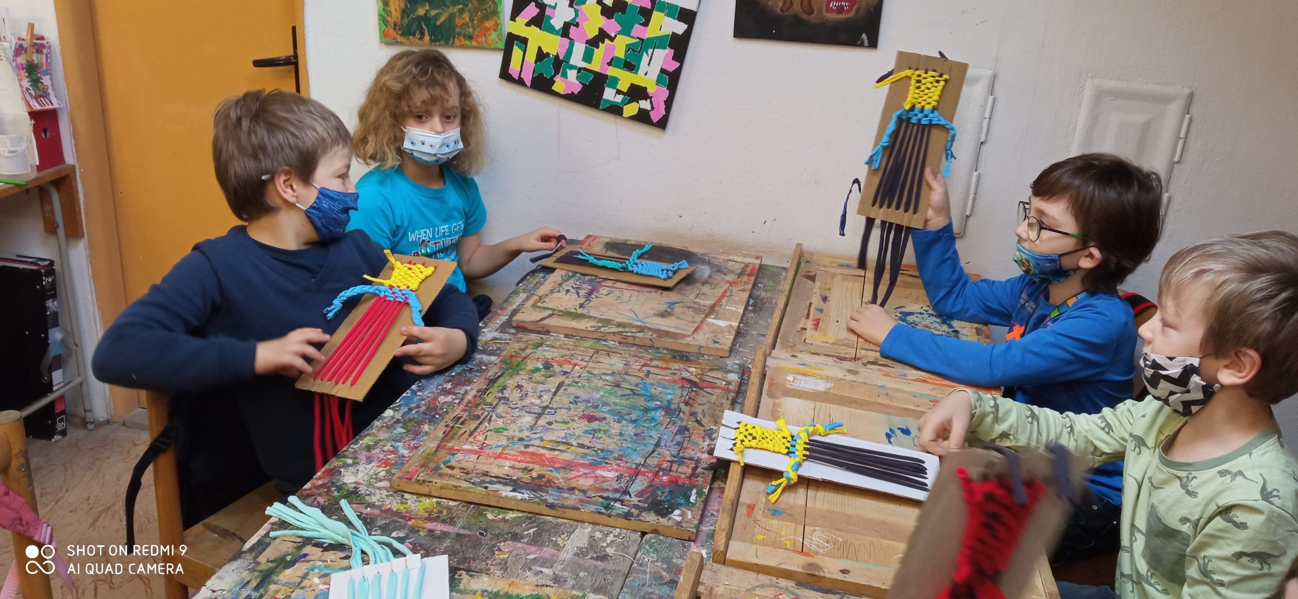 Tričká stačí natrhať na pásiky, vybrať si farby, ktoré sa nám páčia a môžeme začať. Malé pršteky prepletali a prepletali, pani učiteľky pomáhali a nakoniec si každý utkal handrového panáčika podľa vlastných predstáv.