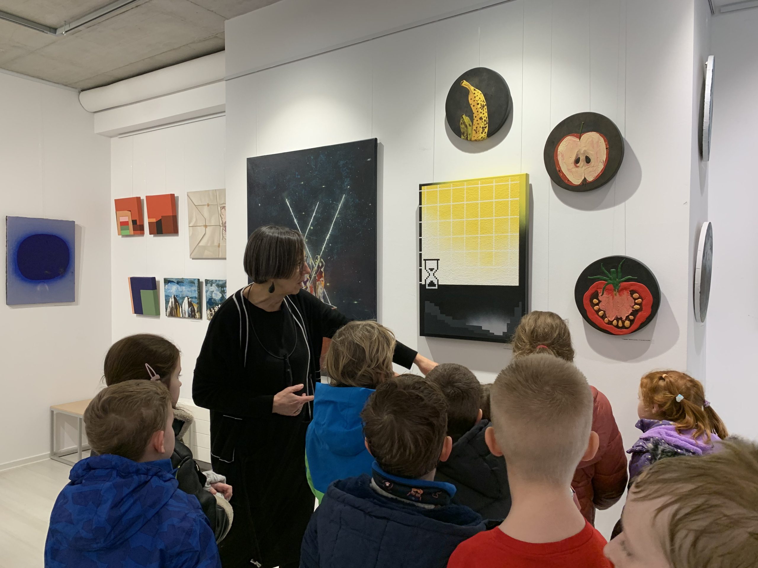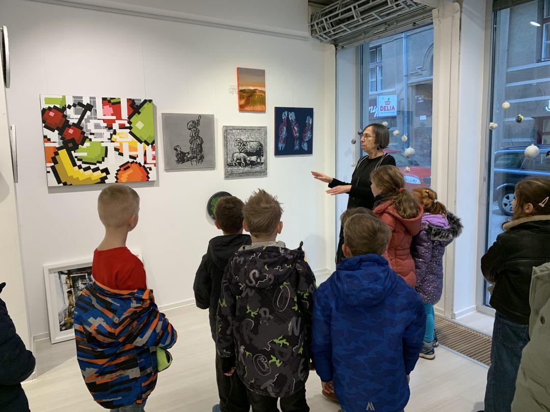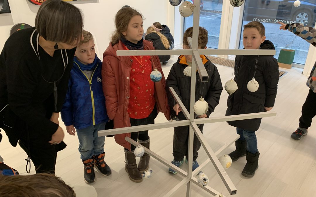 Decembrová návšteva galérie ČIN ČIN priniesla prvákom zážitok z množstva pekných umeleckých diel a vďaka pani majiteľke dostali žiaci odpovede aj na všetky svoje zvedavé otázky. Najväčší úspech zožali maľované ozdoby na stromčeku a maľované kamene.