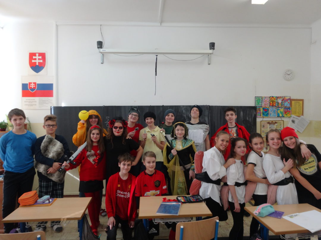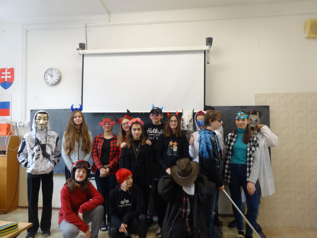 Žiaci sa od rána pohybovali v maskách a na vyučovaní tak vládla karnevalová atmosféra. Počas poslednej vyučovacej hodiny žiaci v každej triede vybrali najlepšiu v masku a víťazov poslali na celoškolské vyhodnotenie, kde tri najoriginálnejšie masky vybrala porota zložená z deviatakov. Na treťom mieste sa umiestnil Benjamín z V. B s maskou starčeka, na 2. mieste Rasťo z IX. A prezlečený za pohľadnú slečnu a zvíťazil Jakub z V. A v maske DJ Marshmello.