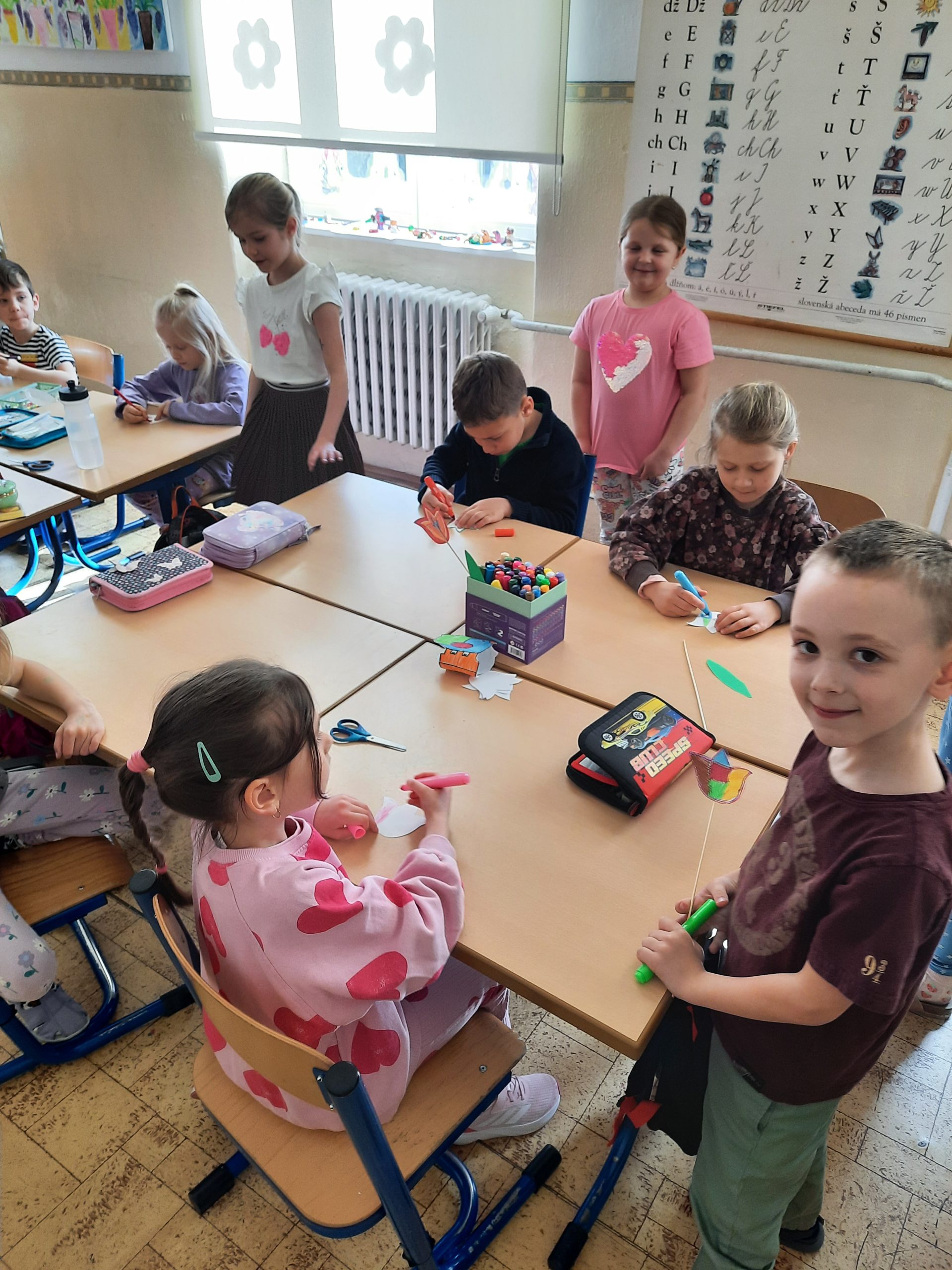 Niekoľko dní sme sa všetci spoločne pripravovali na privítanie všetkých, ktorí prijali pozvanie na Deň otvorených dverí na 1. stupni našej základnej školy. Prišli pani učiteľky so žiakmi z okolitých materských škôl i rodičia s deťmi, ktorí sa pripravujú na zápis do 1. triedy. Ukázali sme im priestory školy a v každej triede sa mohli zapojiť do aktivít, ktoré súviseli s jednotlivými vyučovacími predmetmi. Na zrekonštruovanom školskom ihrisku ich čakala pani trénerka, ktorá pre deti pripravila pútavé športové činnosti. Za každú aktivitu zbierali budúci prváci pečiatky, ktoré potom vymenili za darčeky, ktoré im vlastnoručne zhotovili ich starší spolužiaci.