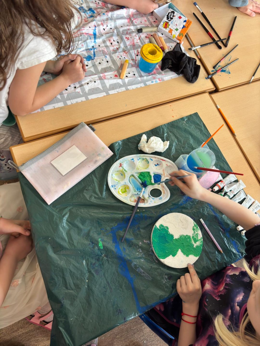 Žiaci na konci apríla spracovali projekty na tému Deň Zeme. Diskutovali o možnostiach ochrany planéty a chodili na prechádzky. Nechýbalo kreslenie kriedou, ani výrobky z prírodnín.