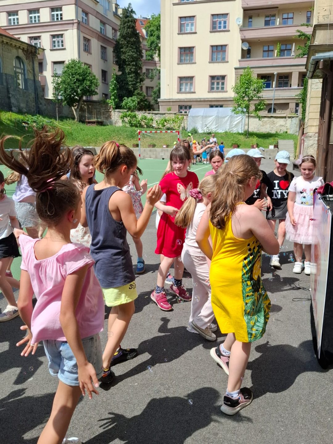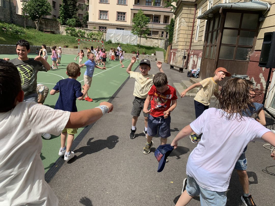 Medzinárodný deň detí sme v ŠKD oslávili diskotékou s naším obľúbeným p. Žákom z divadla Agapé. Nechýbal tanec, smiech, rôzne hry, tanečné súťaže, výrobník bubliniek a ako čerešnička na osvieženie ovlažovanie záhradnou hadicou. Veľký úspech mala aj choreografia druháčok a p. vychovávateľky, ktorú si nacvičili v škole v prírode.