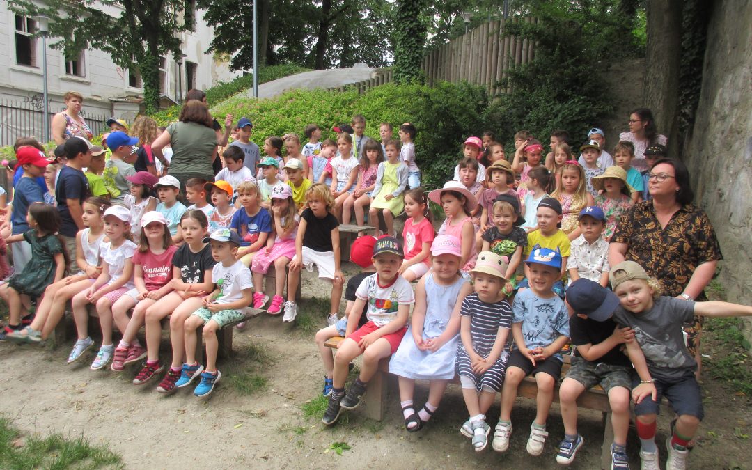 Koncom júna sa naše Žabky a Sovičky pridali k svojim kamarátom z 1. stupňa a spoločne si pozreli interaktívne divadelné predstavenie s environmentálnou tématikou. Do priestorov materskej školy sa vrátili s poučením z príbehu, silnými dojmami a piesňou, ktorú si pospevovali ešte niekoľko dní.